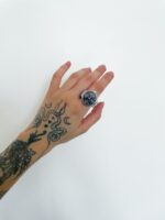 Material: metal 100% zamak, o que garante maior durabilidade. Tamanho ajustável para usar em qualquer dedo : )