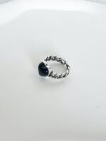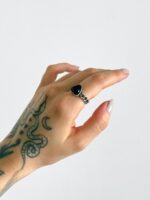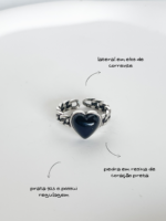 Anel Cool Heart, com formato de coração com pedra preta e banho em prata 925