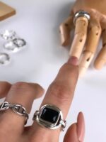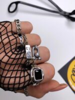 Um dos modelos mais bonitos que temos por aqui, o Anel Groovy tem esse ar geométrico e essa pedra preta incrível. Experimente usar com outros modelos de anel e garanta a melhor produção aos seus looks.