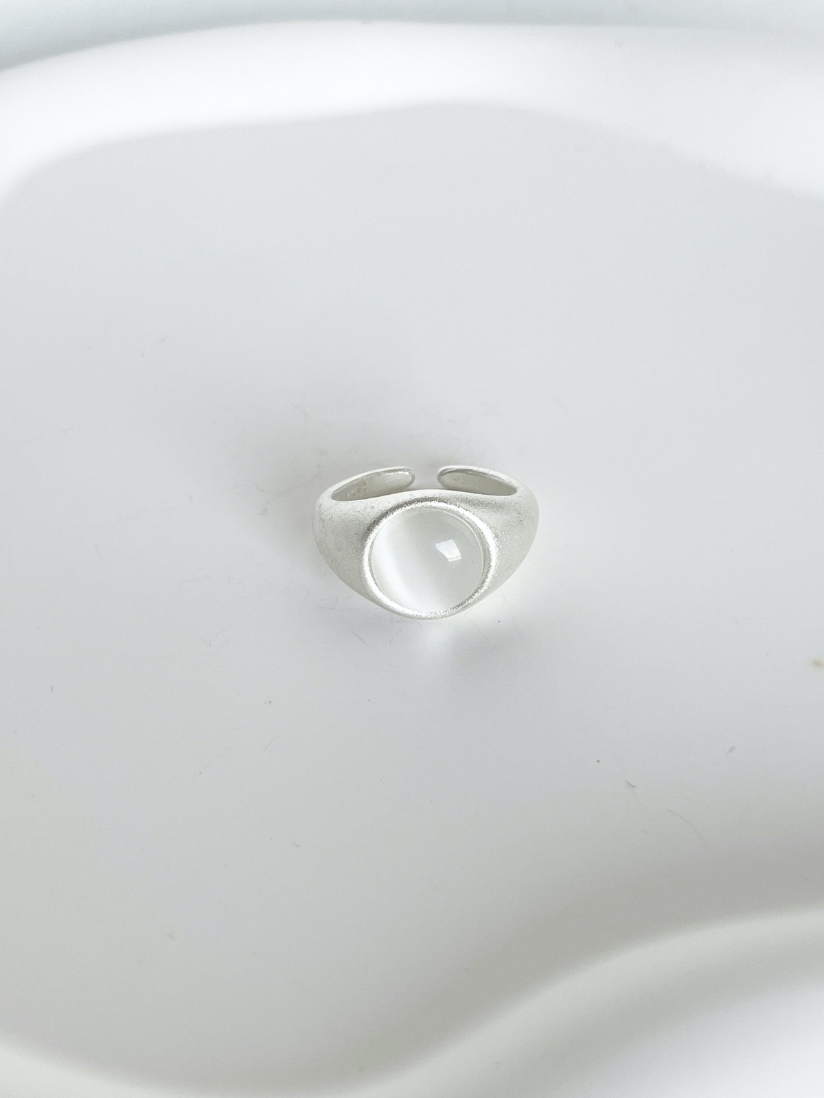 Anel High Low, feito com metal escovado, pedra off withe no centro e banho fosco em prata 925