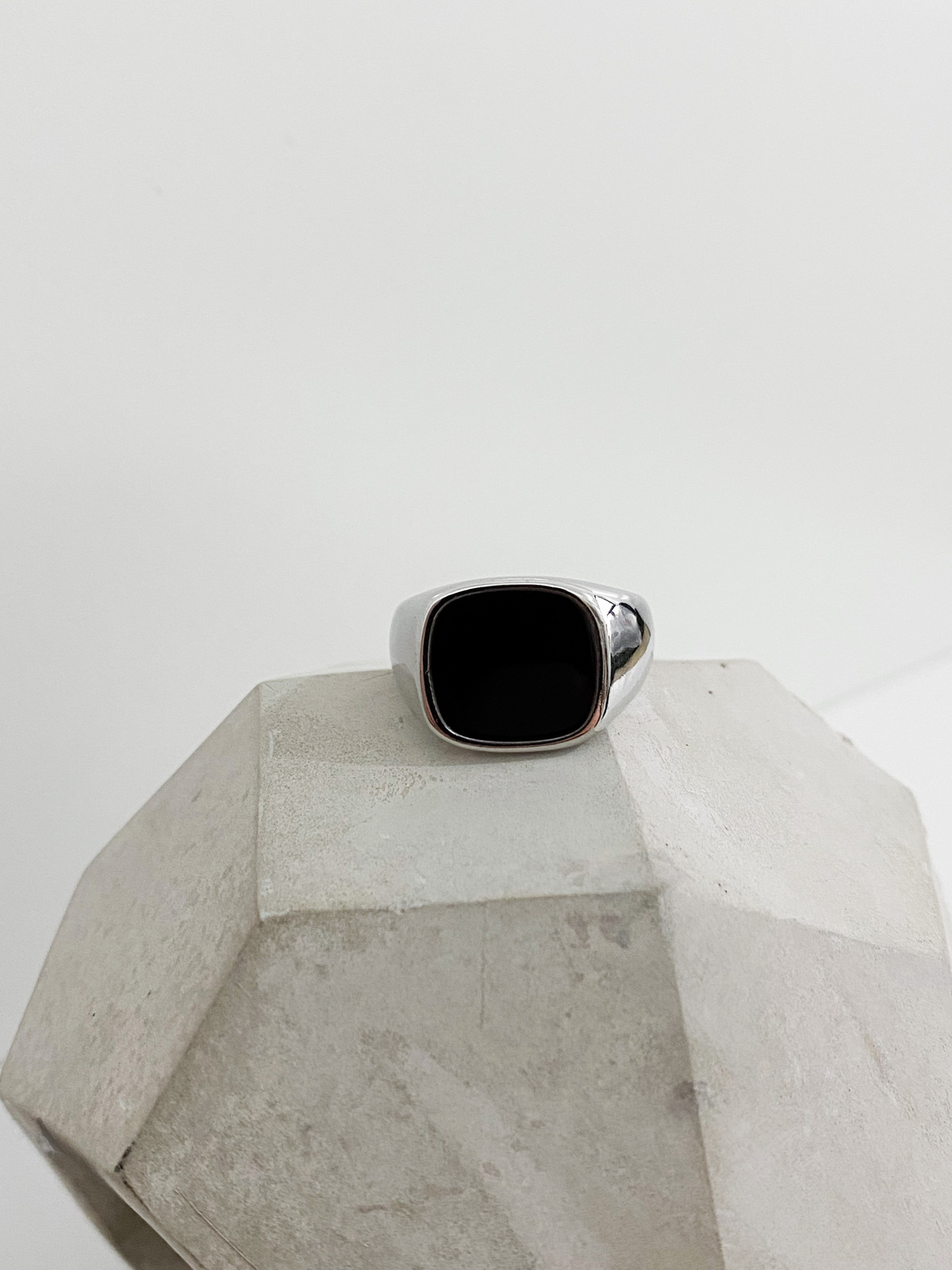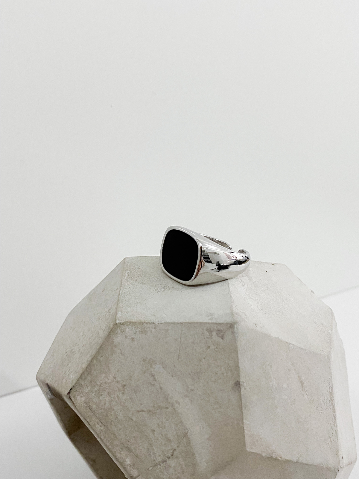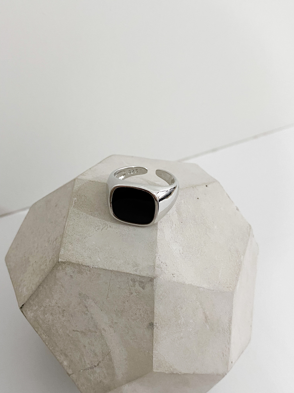 Anel banhado em prata 925 com detalhe em resina preta retangular