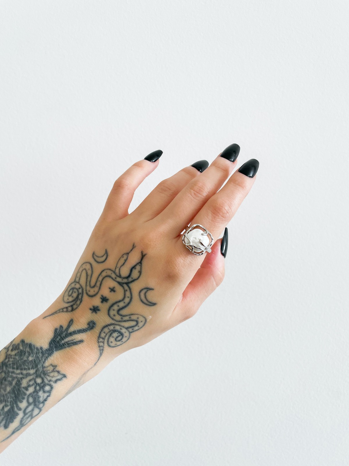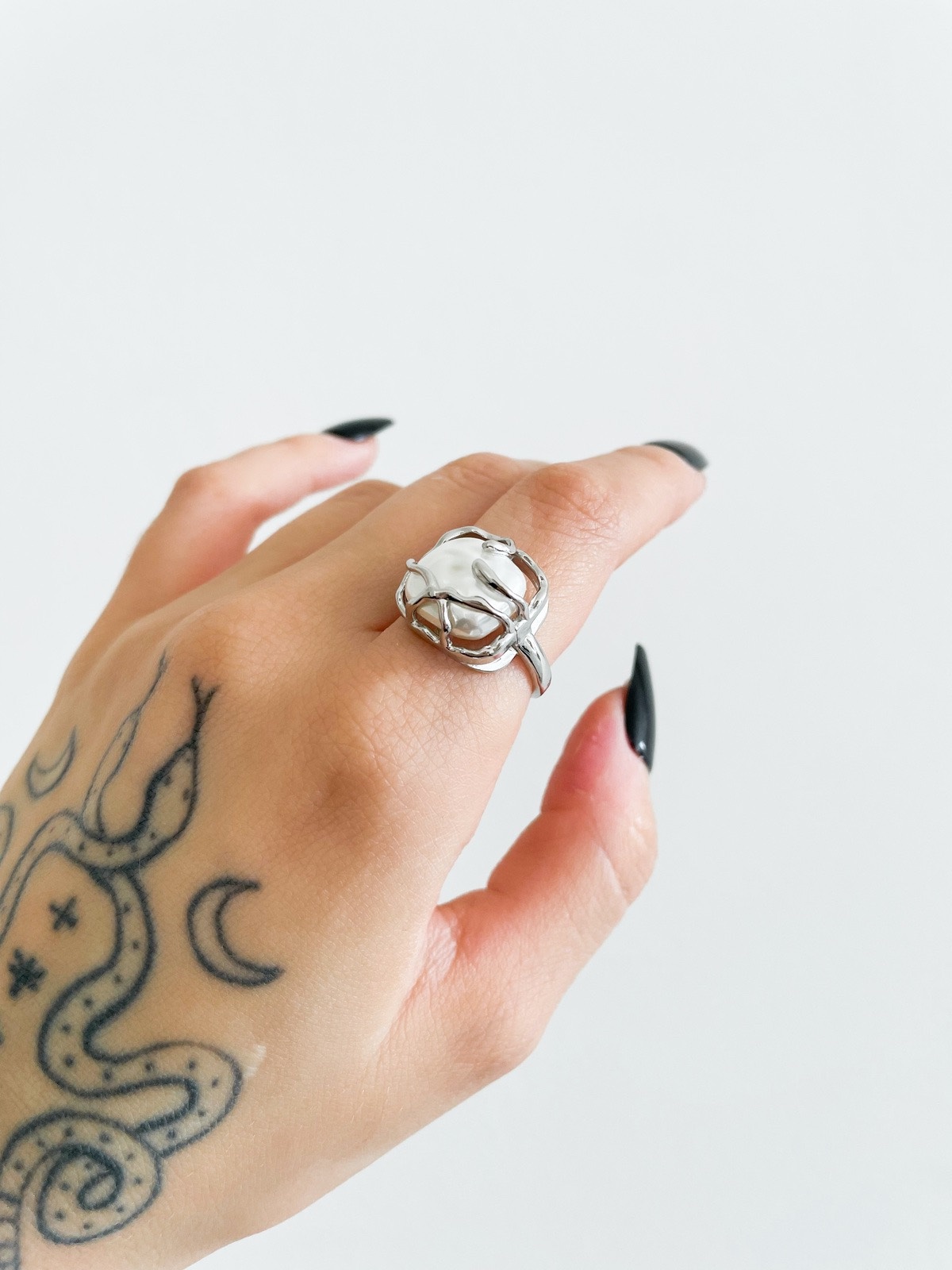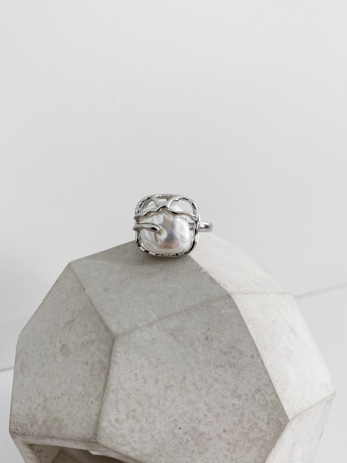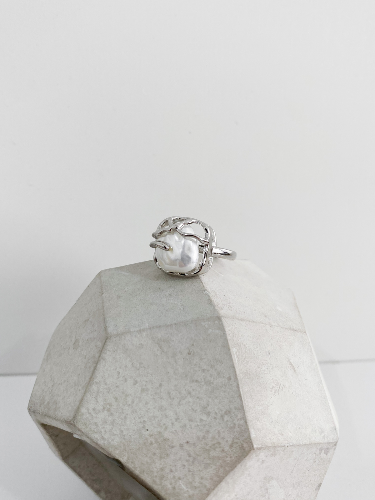 Anel Organic Pearl, com formato orgânico. Super estiloso com banho em prata 925