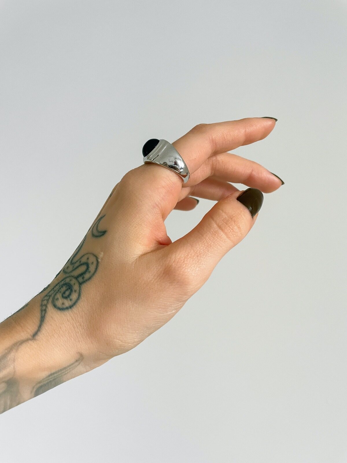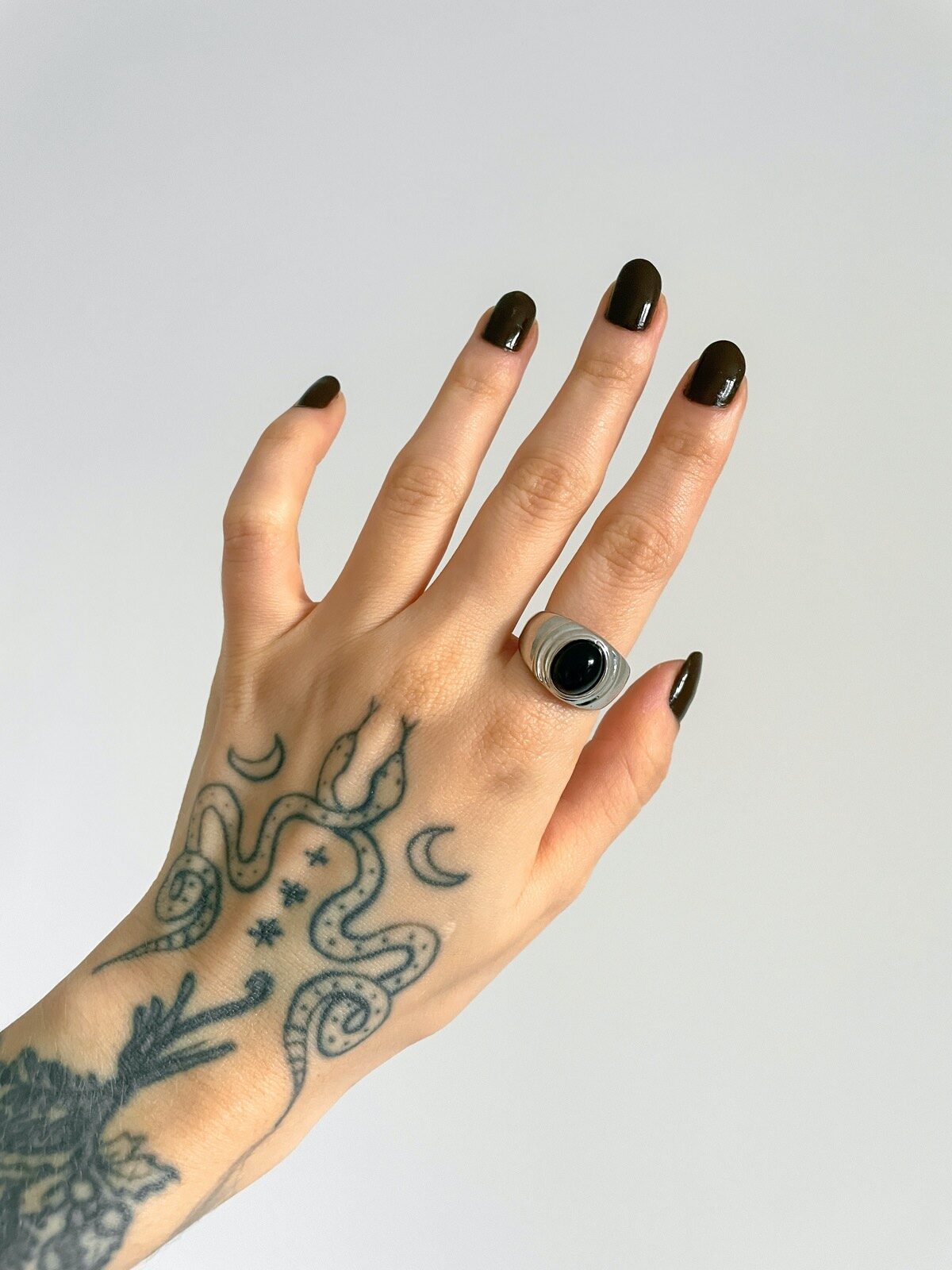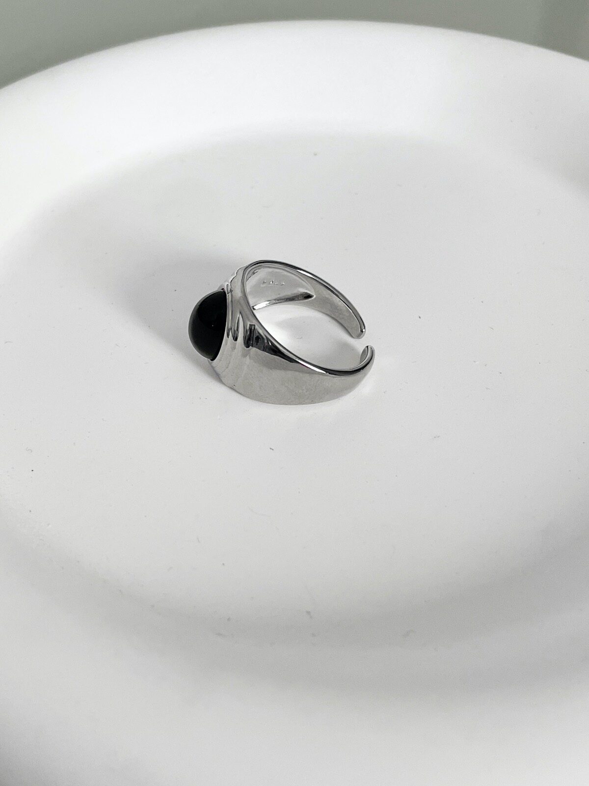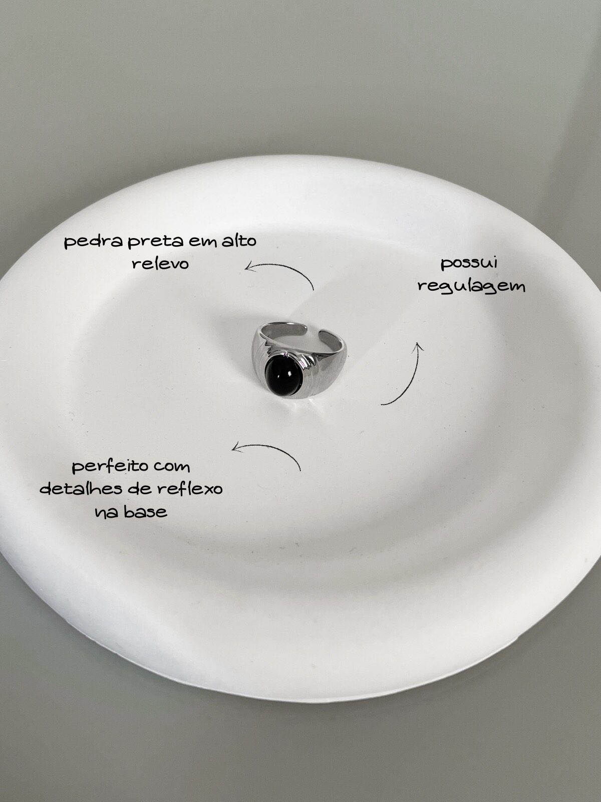 Anel Osbourne, minimalista com formato oval, pedra preta e banho em prata 925