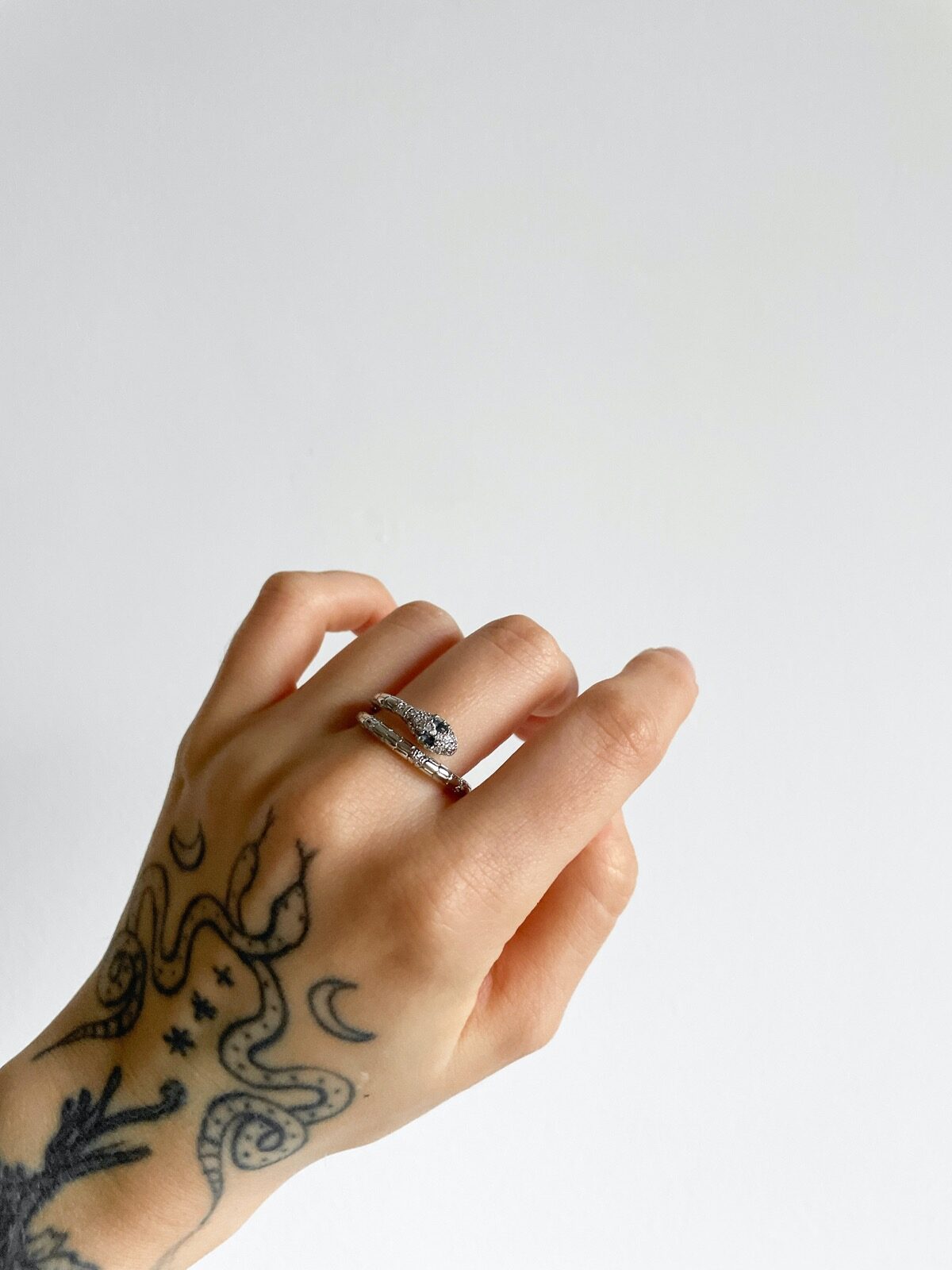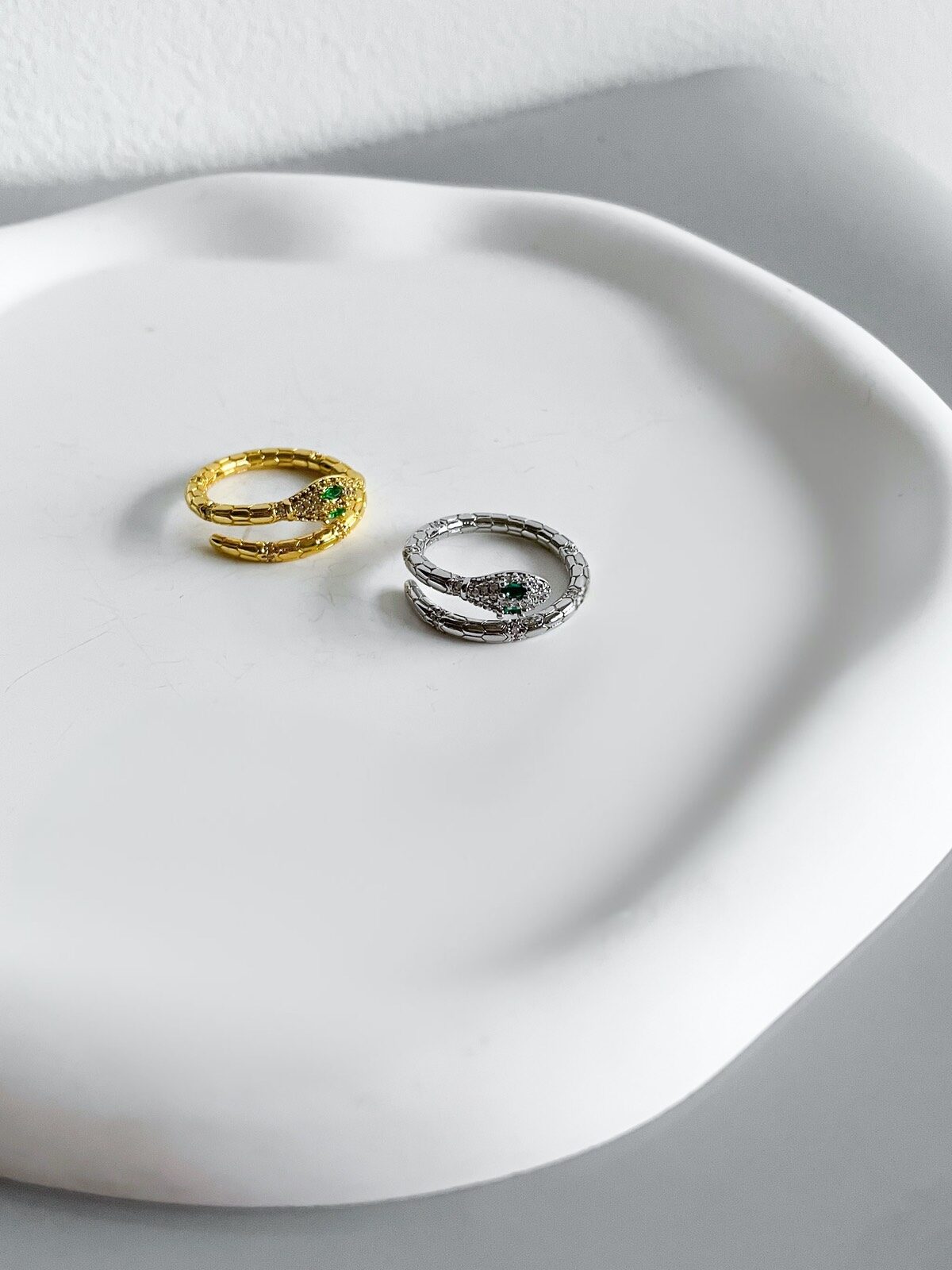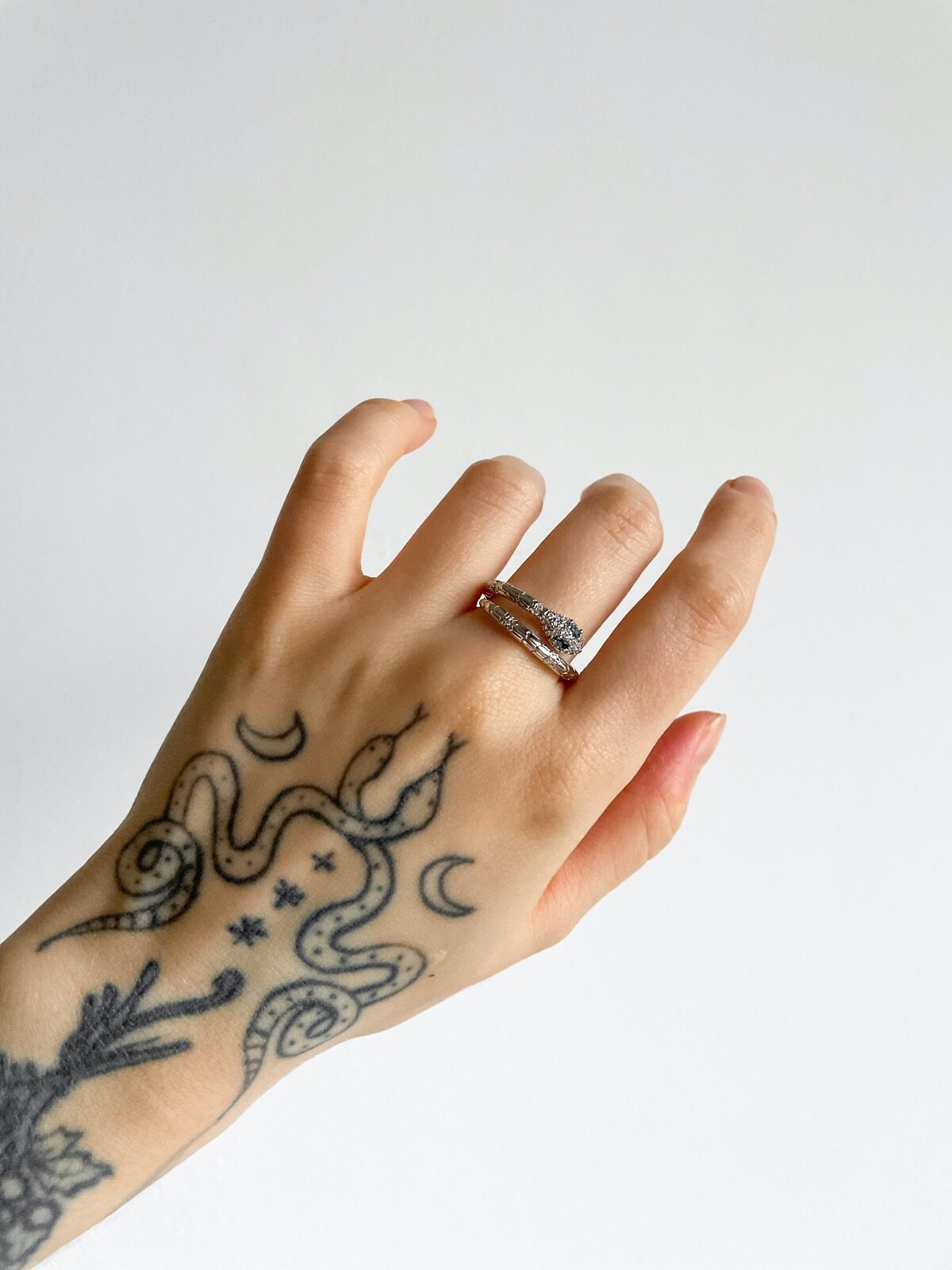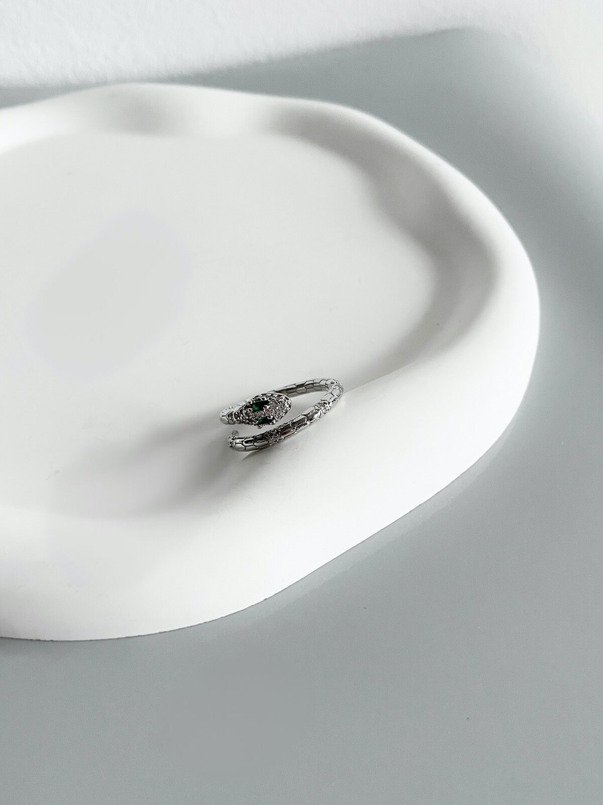 Anel Serpent Silver, minimalista com formato de cobra, com cristais cravejado e banho em prata 925
