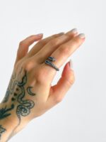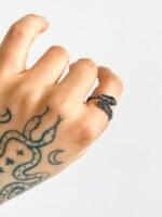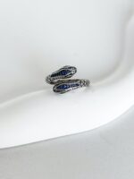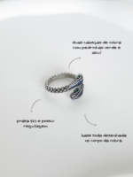 A cobra é sempre muito bem vinda por aqui e nunca sai de moda. Ele tem essa cabeça dupla snake com pedrinhas brilhantes em azul e verde. Ele tem a espessura fininha e o corpo da cobra é todo desenhadinho. Use sozinho ou com outros anéis juntos.