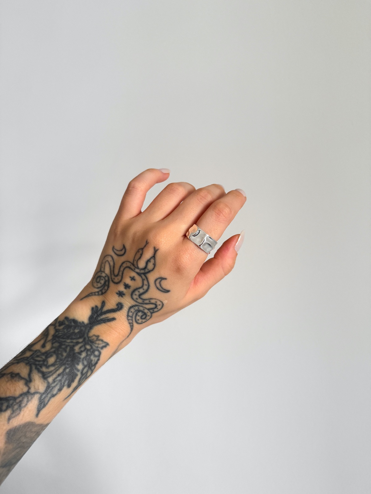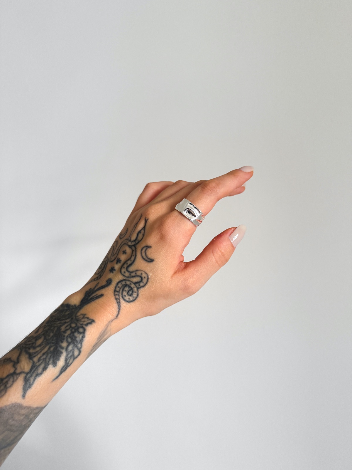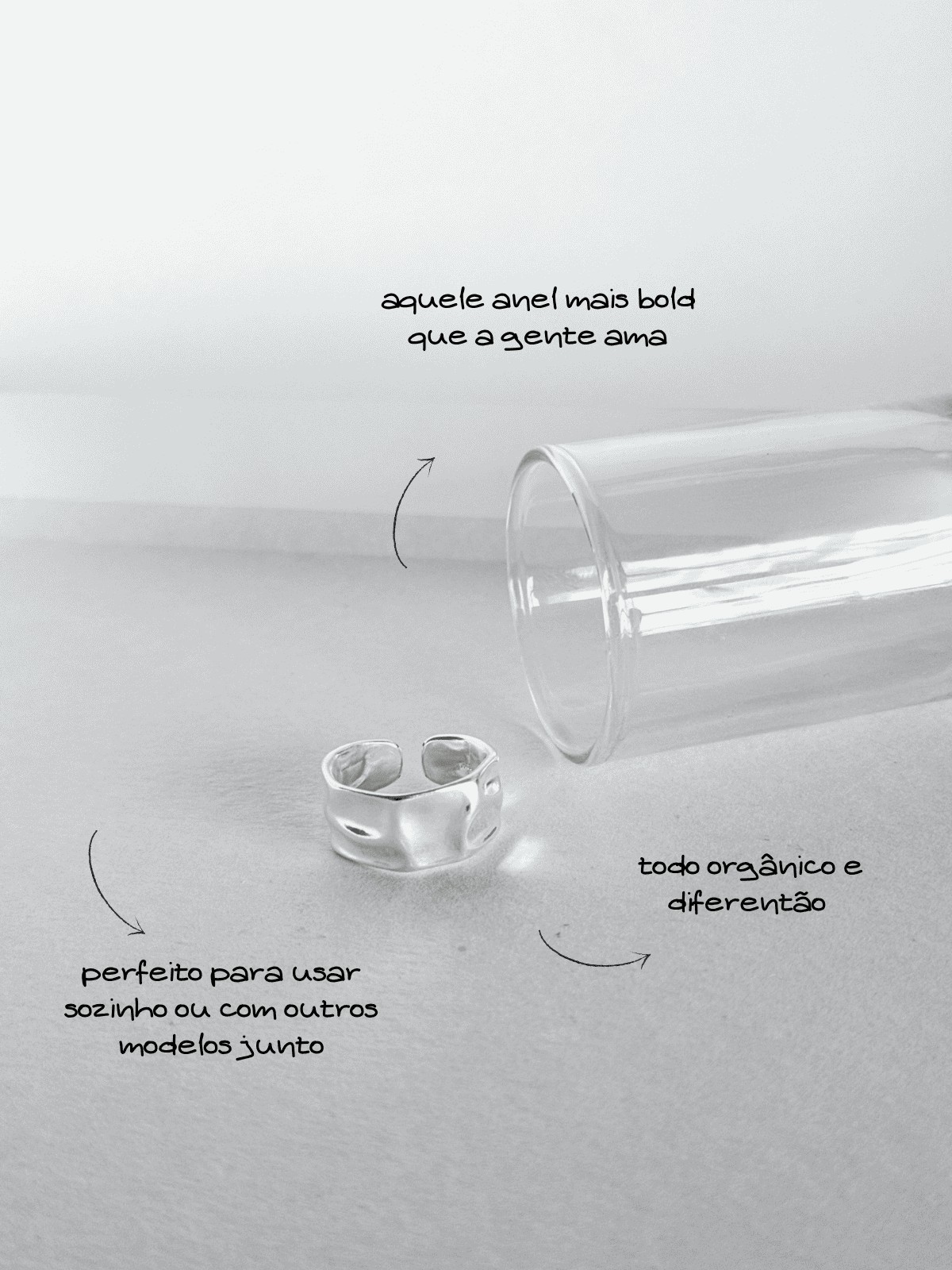 Aquele anel mais grossinho perfeito para misturar com peças mais finas. Ele já é um sucesso por aqui na versão fininha então trouxemos na versão mais grossa, mas ainda assim no mood orgânico anatômico que deixa qualquer look mais interessante.