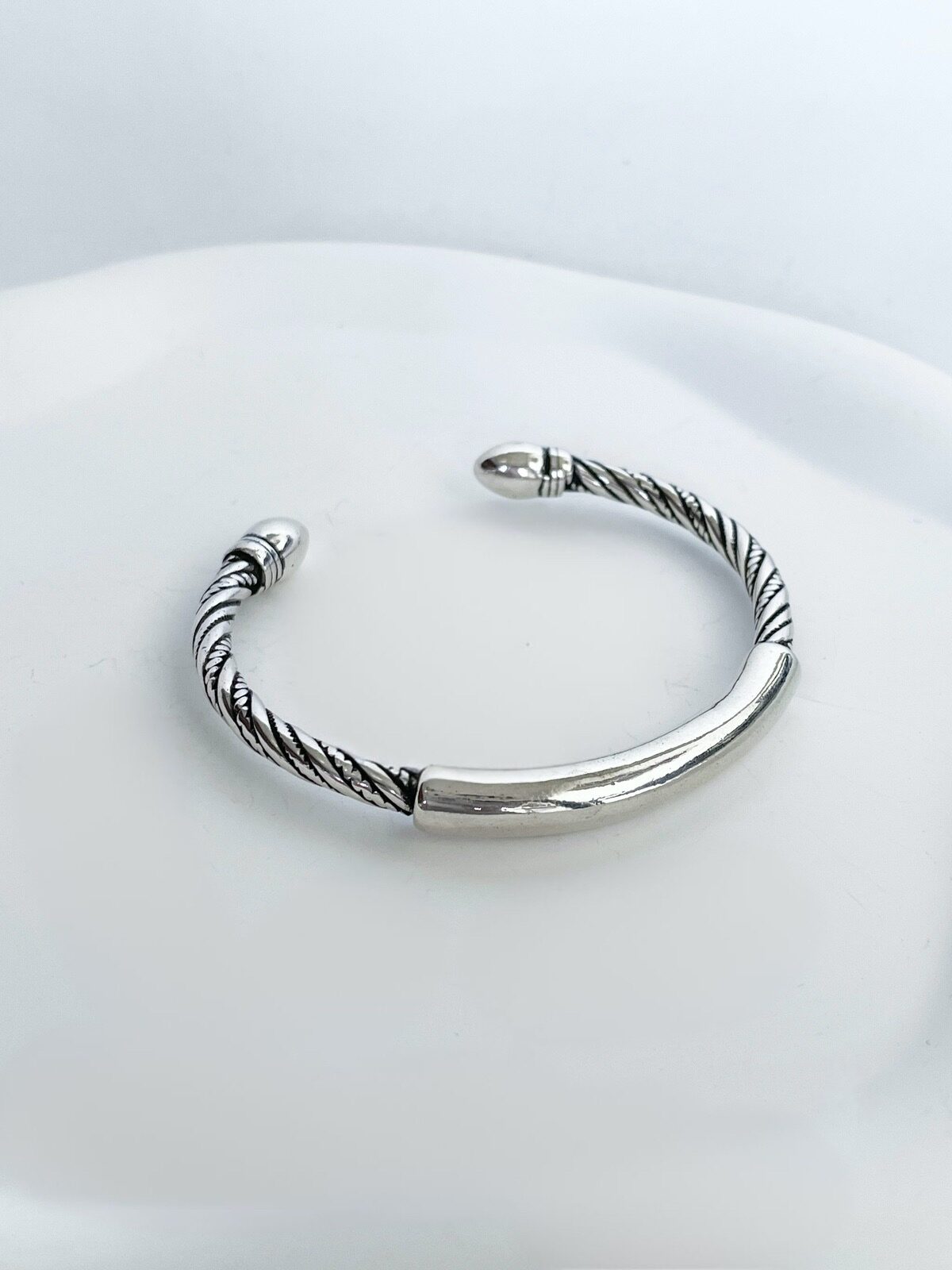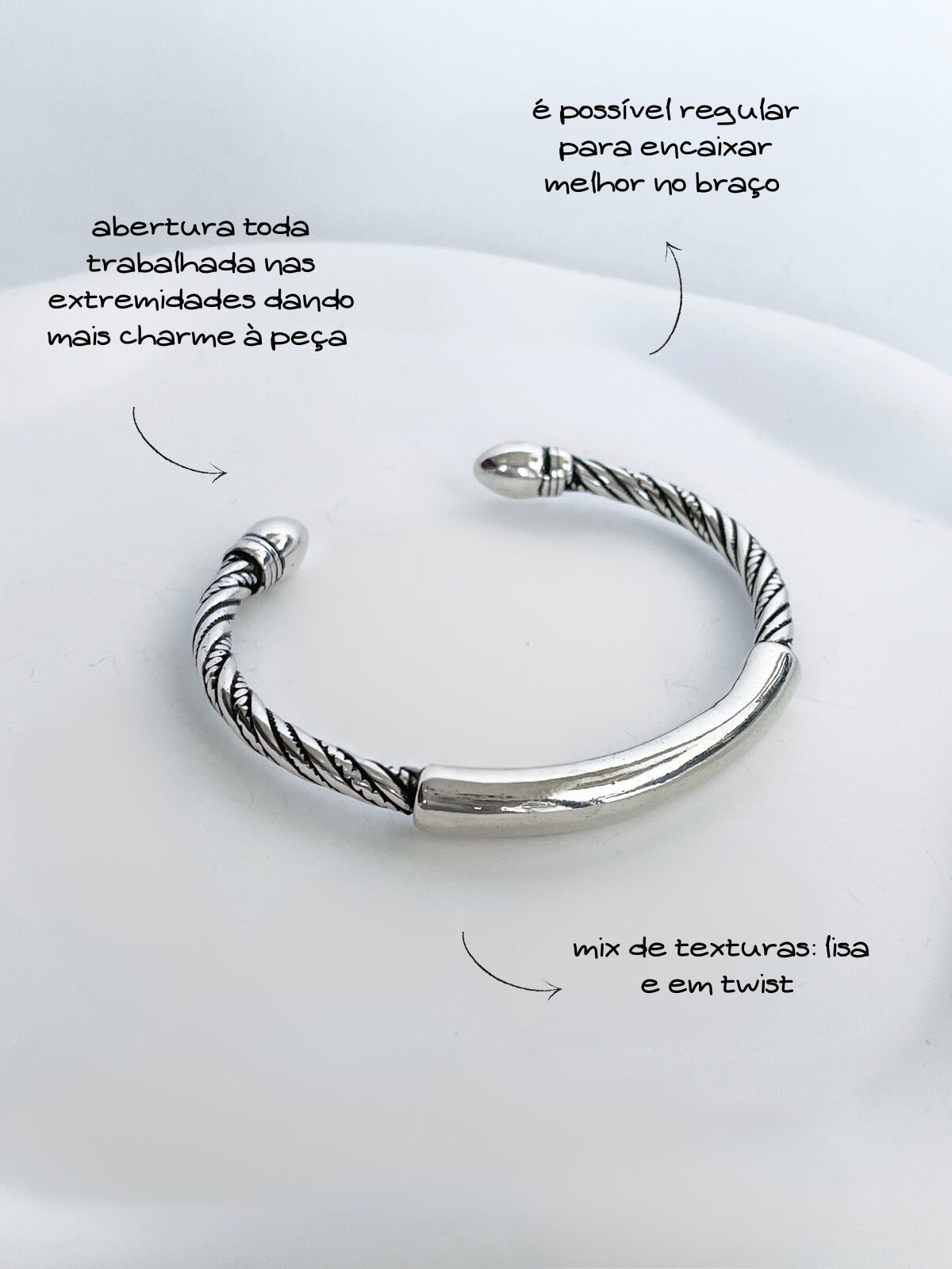 A perfeição em forma de bracelete: ele tem esse mood twist com as ponteiras super estilosas e ainda tem essa ”barra” no centro do bracelete. O melhor de tudo é que é uma peça super versátil e pode ser usada com a abertura pra frente ou pra trás.