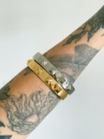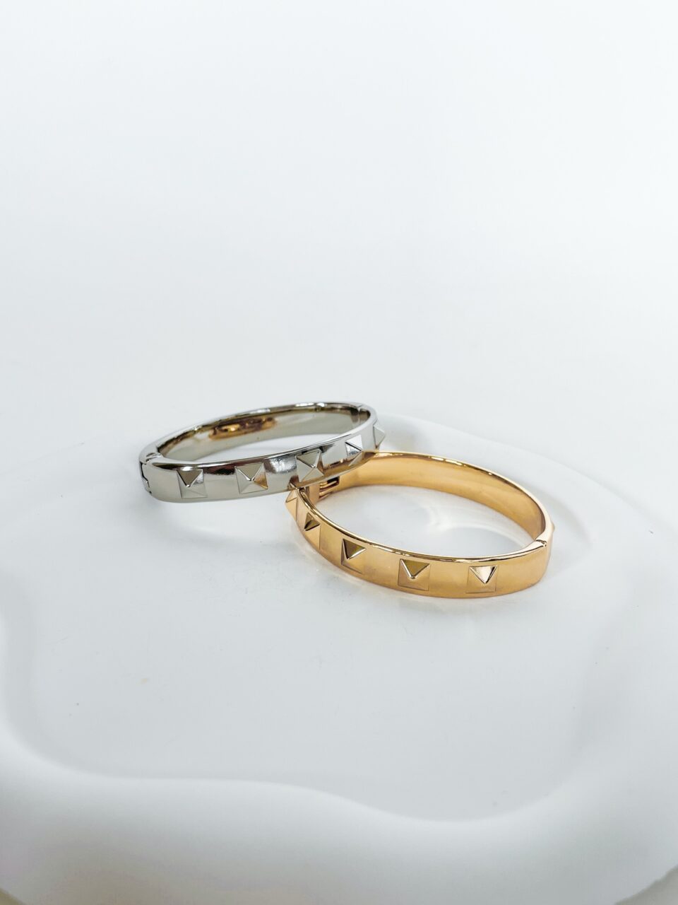 Um bracelete super estiloso para os seus melhores looks: ele tem a base lisinha e conta com 10 pirâmides em alto relevo que formam belíssimos spikes. Possui abertura para facilitar na hora de colocar e tirar e você vai amar usar as duas cores juntas. Enjoy!