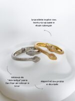 Como não amar esse bracelete de cobra, com duas cabeças se encontrando? Super estiloso, ele é todinho texturizado em ”escamas” e você vai amar usar as duas cores juntas. Perfeito para qualquer ocasião. Possui abertura para facilitar na hora de colocar e tirar.