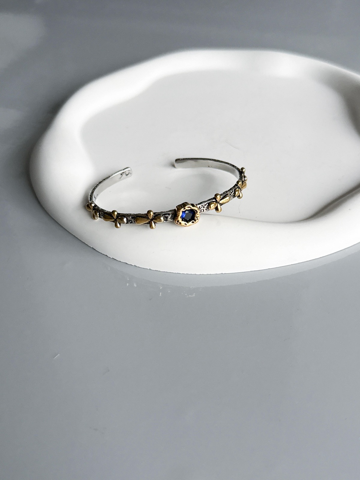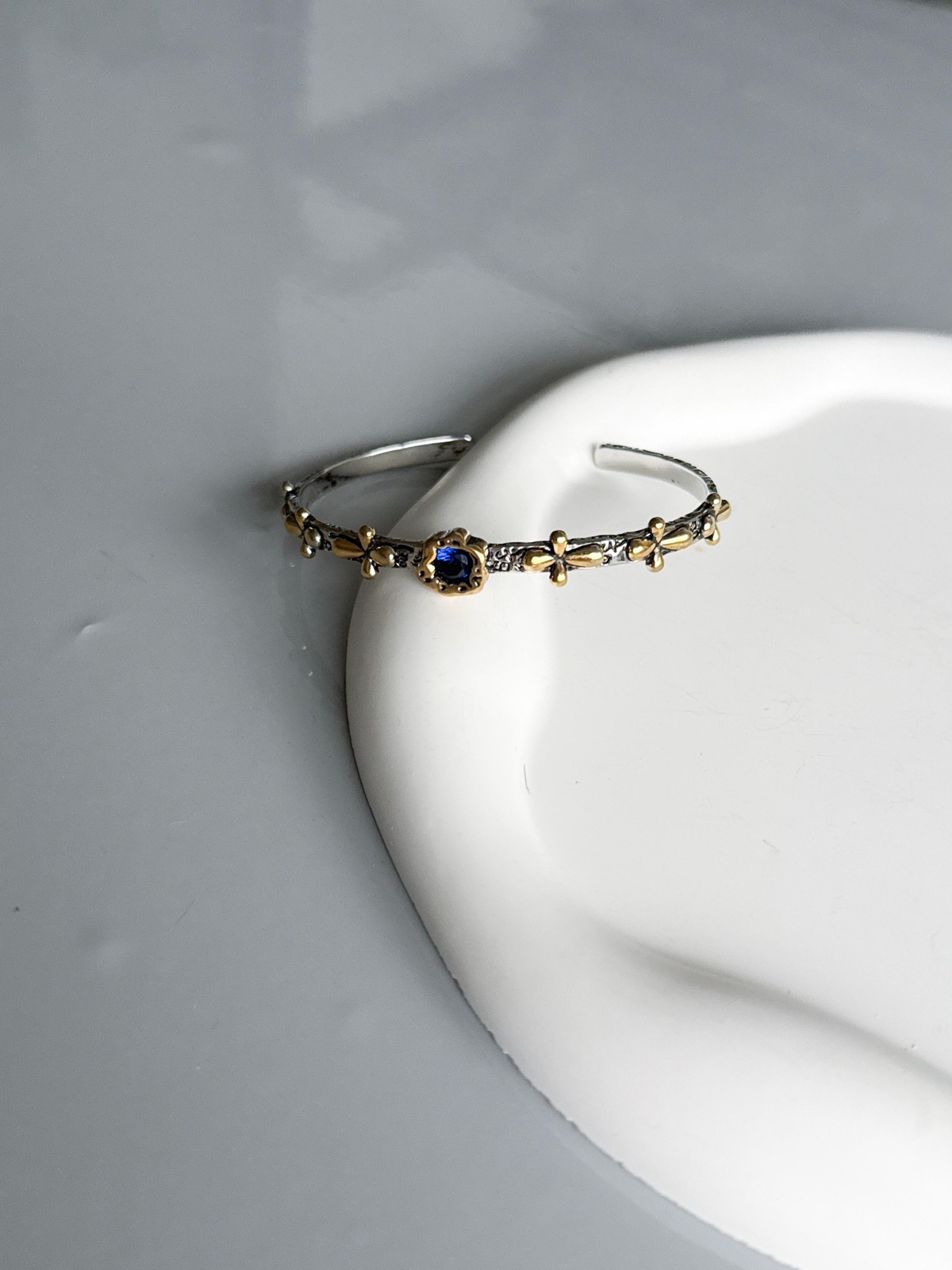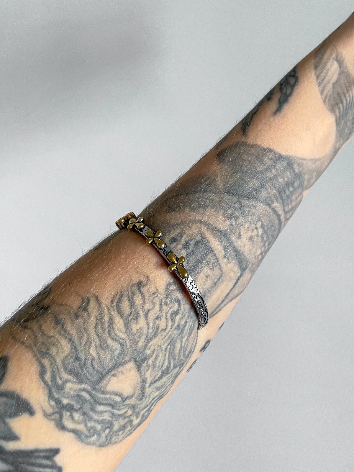 Bracelete Vintage, feito com aro rígido, mix de banho prata e dourado envelhecido e prata 925