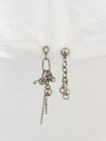 Brinco Bleesy, assimétrico com pontos de brilho, pingente piercing, argolas de tamanhos diferentes e correntes