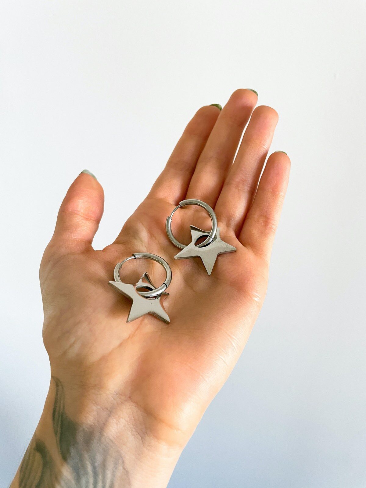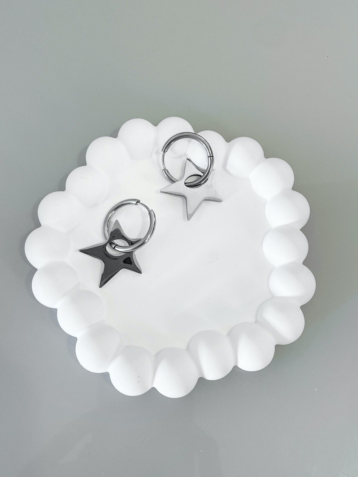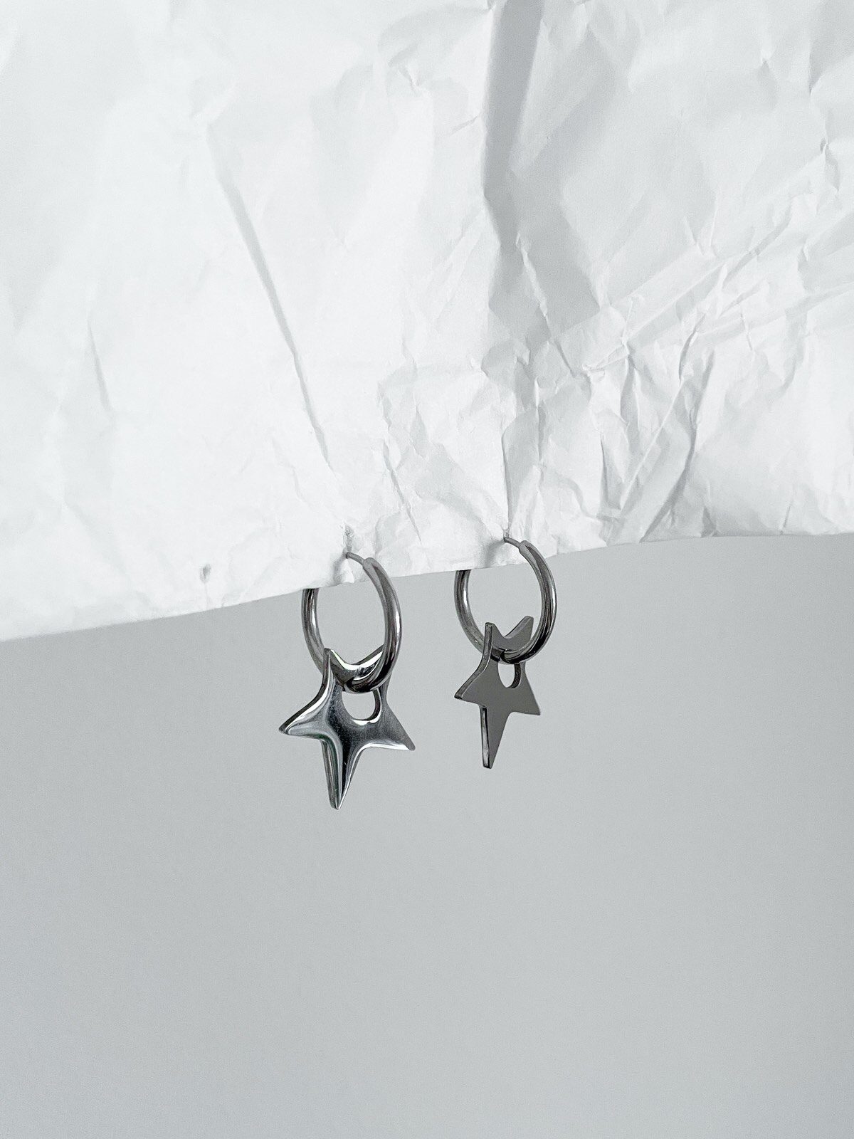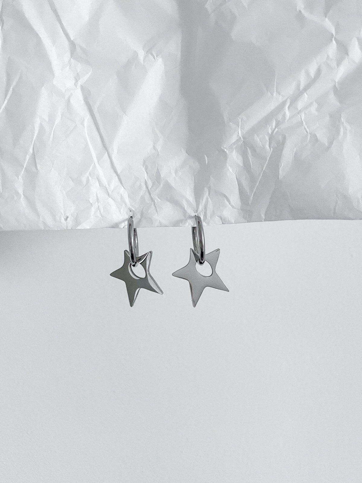 Brinco Bowie Star, é super tendência. Brinco de argola com pingente de estrela aestheric prata
