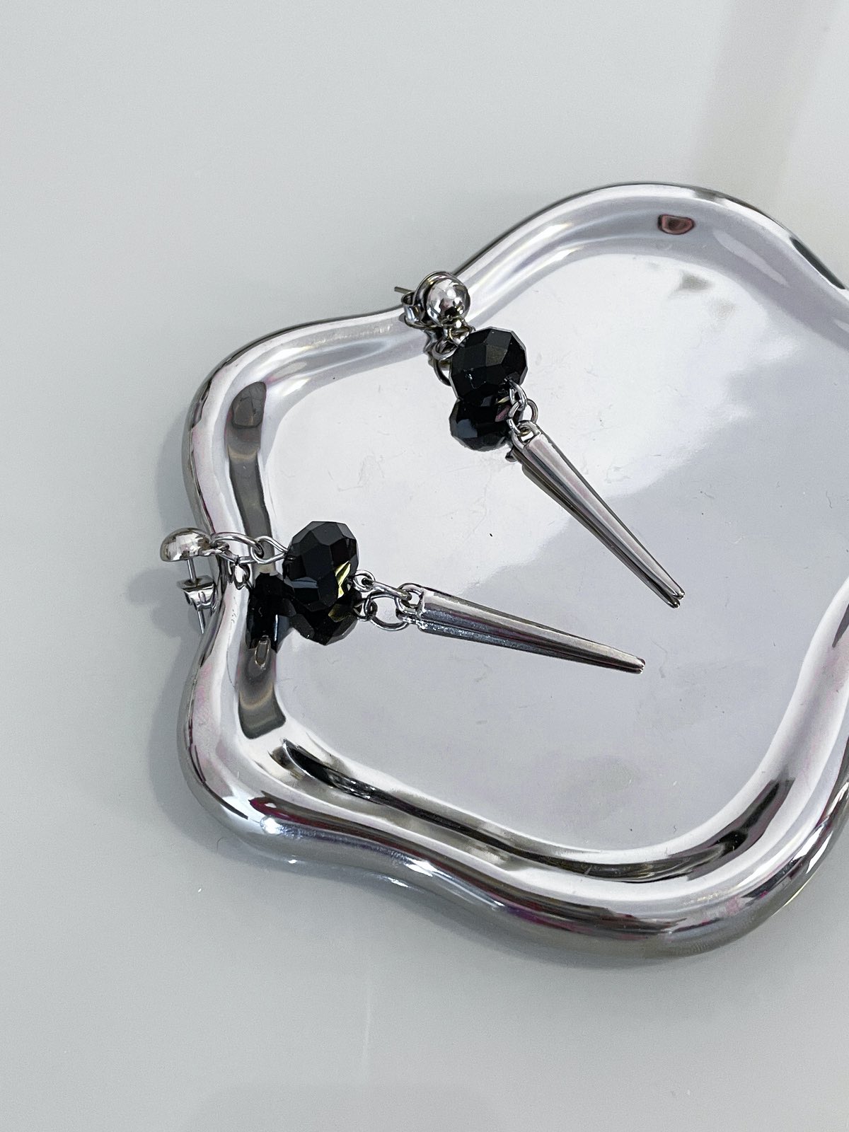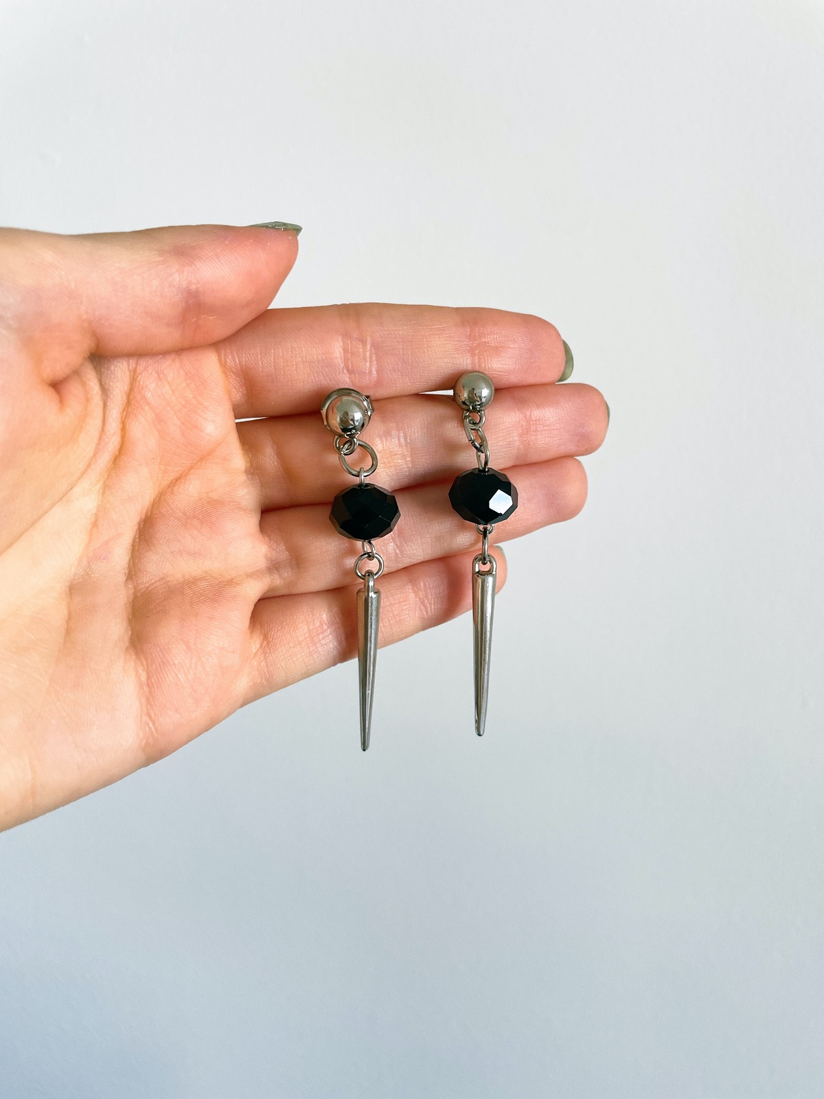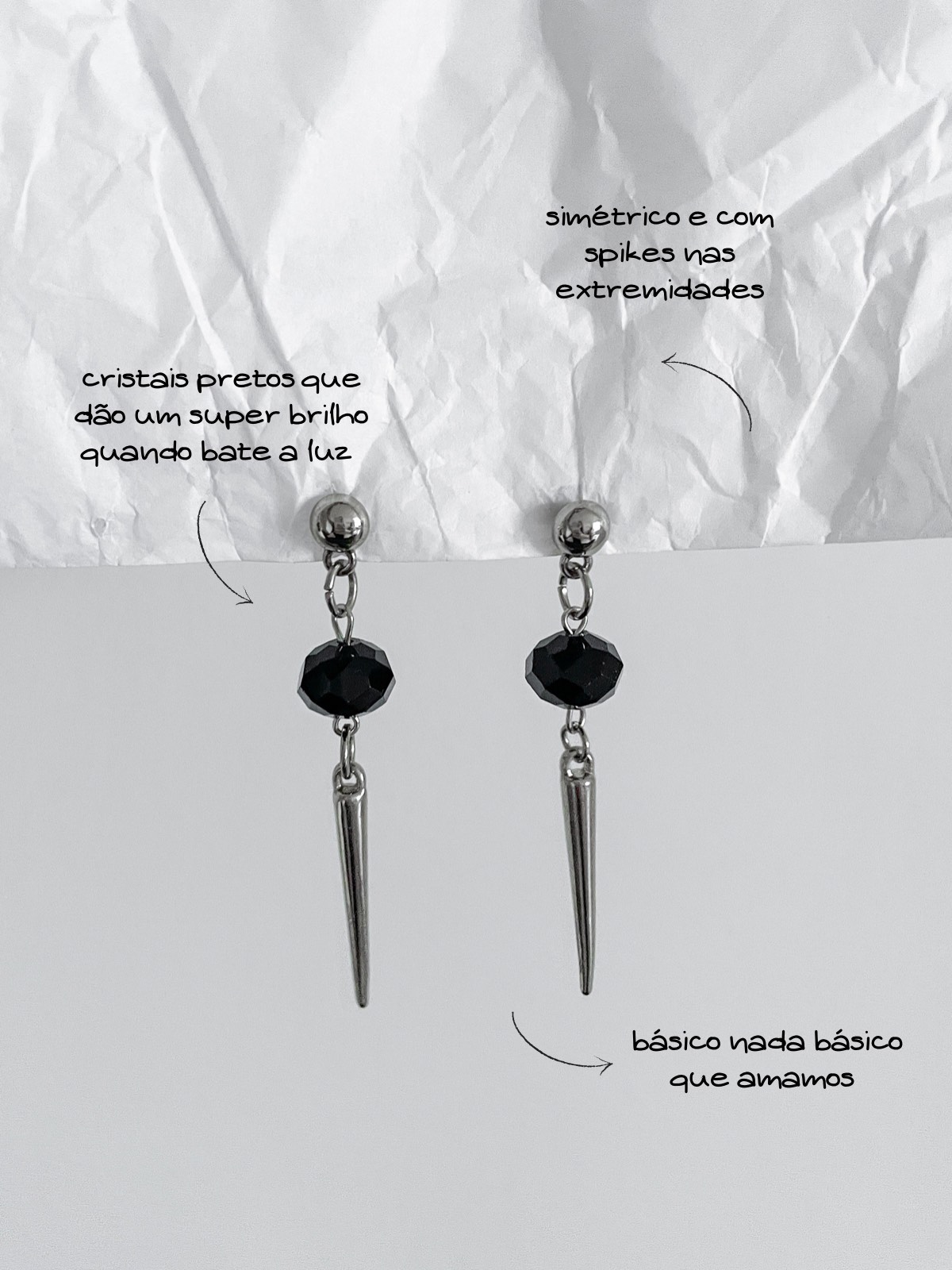 Brinco Dark Noir, feito com cristais preto, spike e base minimalista
