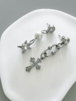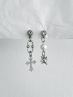 Brinco Gothic Cross, feito elo lisérgico, rocket ball e cruz com strass prata