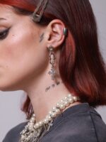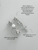 O elo lisérgico está super presente por aqui nas novas peças e nós amamos o charme que ele dá. Na vibe assimétrica que amamos, esse brinco tem um tamanho médio e mistura a delicadeza da pérola e da cruz brilhante com o mood alternativo da Rocket ball e do elo lisérgico. Além de tudo, tem um ponto de luz em cada base, deixando a peça mais linda ainda. Gostou do piercing fake? clique aqui para encontrar.