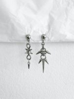 Olha que amor esse modelo: de um lado o arame farpado que já temos por aqui e vocês amam então trouxemos de volta nesse Drop, e do outro, mini spikes e argolinhas piercing penduradinhos nesse modelo super fofo. Um modelo de tamanho médio de brincos para os seus melhores looks.