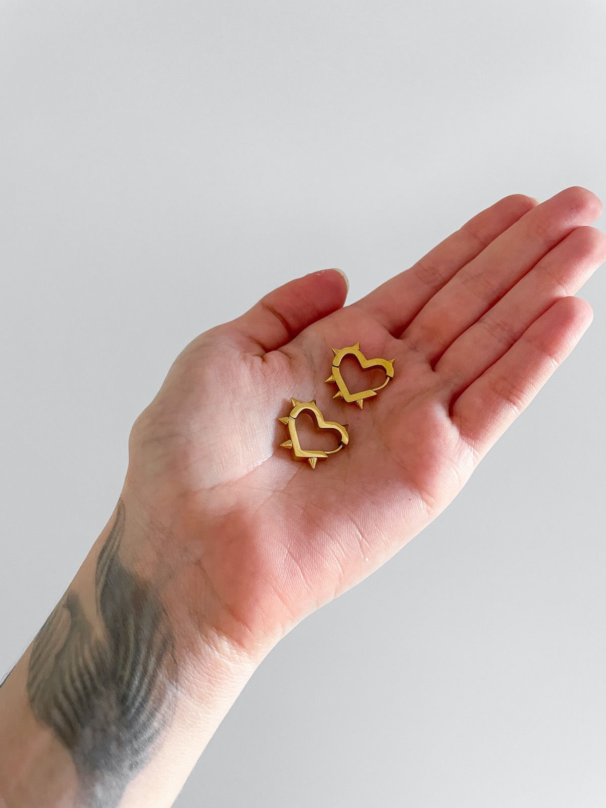 Brinco Lovebite Gold, feito com coração cheio de spikes