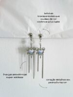 Brinco Lysergic Heart Fringes, é super tendência. Com formato de coração vibe futurista e pedra holográfica