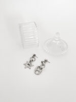 Brinco Popstar, feito com argolas de metal, pingente lacre e estrela prata
