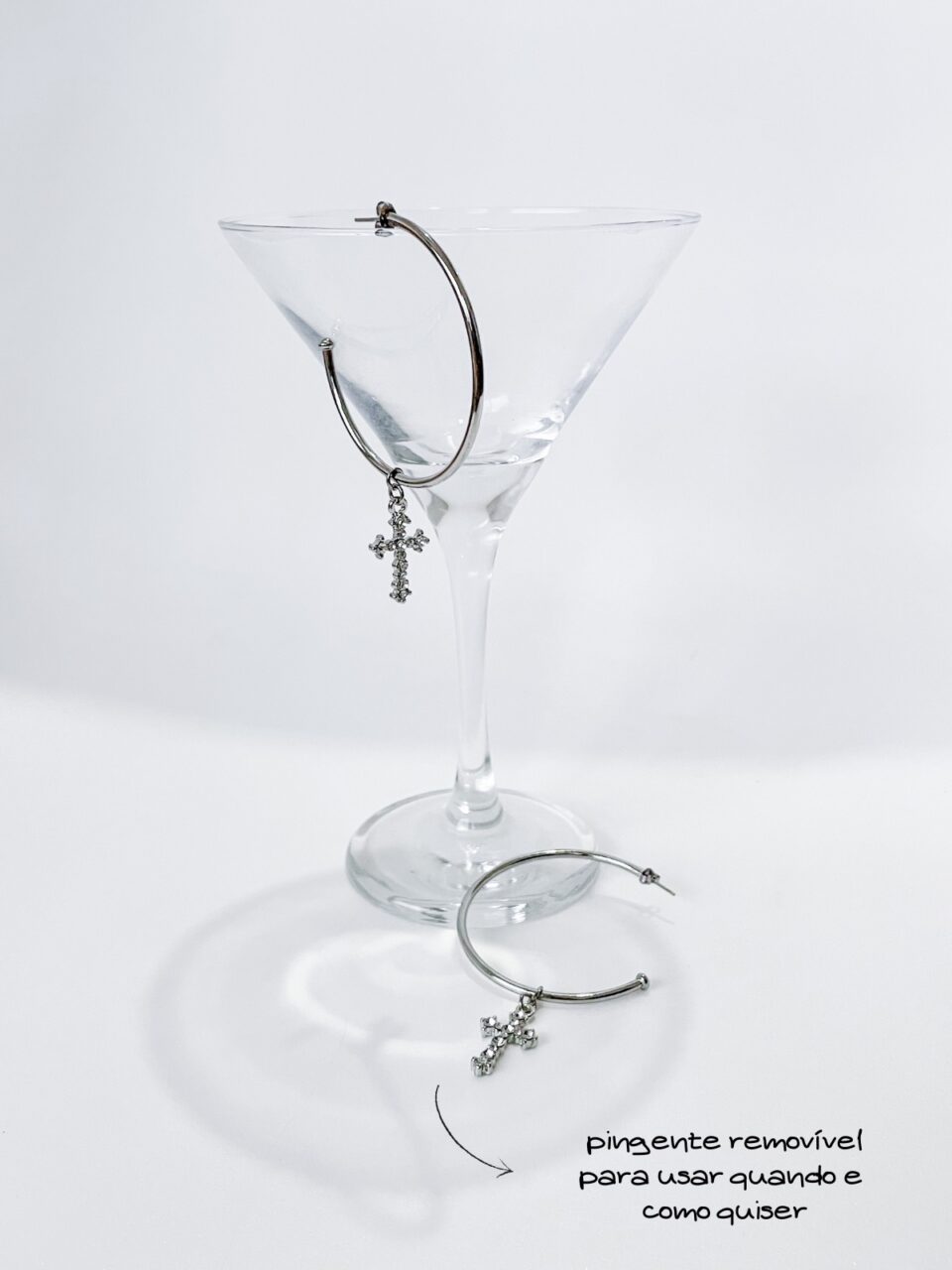 Se você ama as tendências você deve saber que a cruz está super em alta. Temos vários modelos de brincos e colares em cruz e agora trouxemos essa versão super estilosa e babadeira com a argola maior e cheio de brilho. Aquele brinco perfeito pra usar sozinho ou misturar com outros modelos e tamanhos em outros furos.