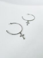 Brinco Shine Cross, feito com base redonda níquel e pingente de cruz com strass