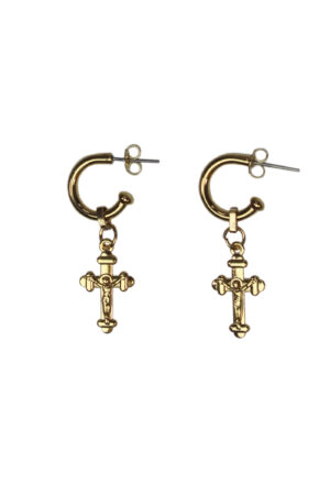 Olha que amor nosso brinco de cruz gótica. Ele tem a base de argolinha que fica super leve na orelha. A cruz tem as pontas trabalhadas que dá um super charme à peça e você vai amar. Além disso, ele tem um tamanho perfeito para usar sozinho no furo principal, ou em outros furos junto com outros tamanhos de brincos.
