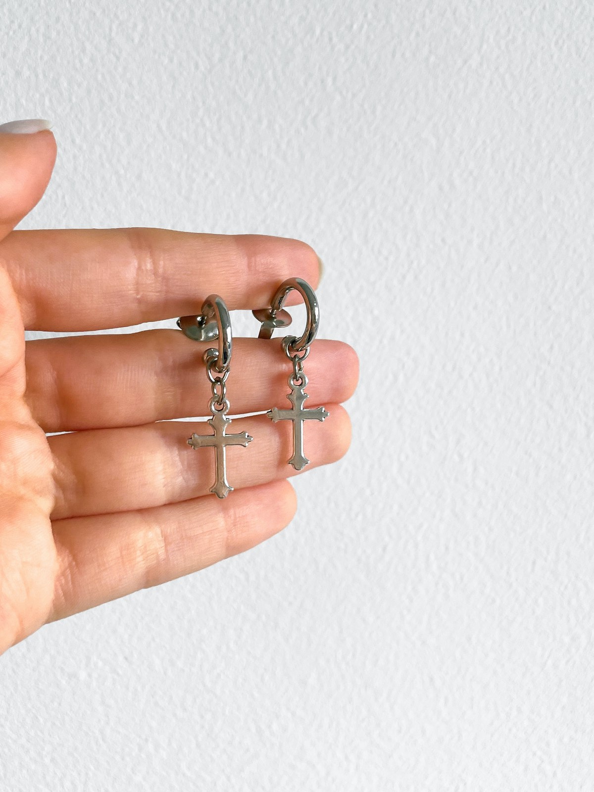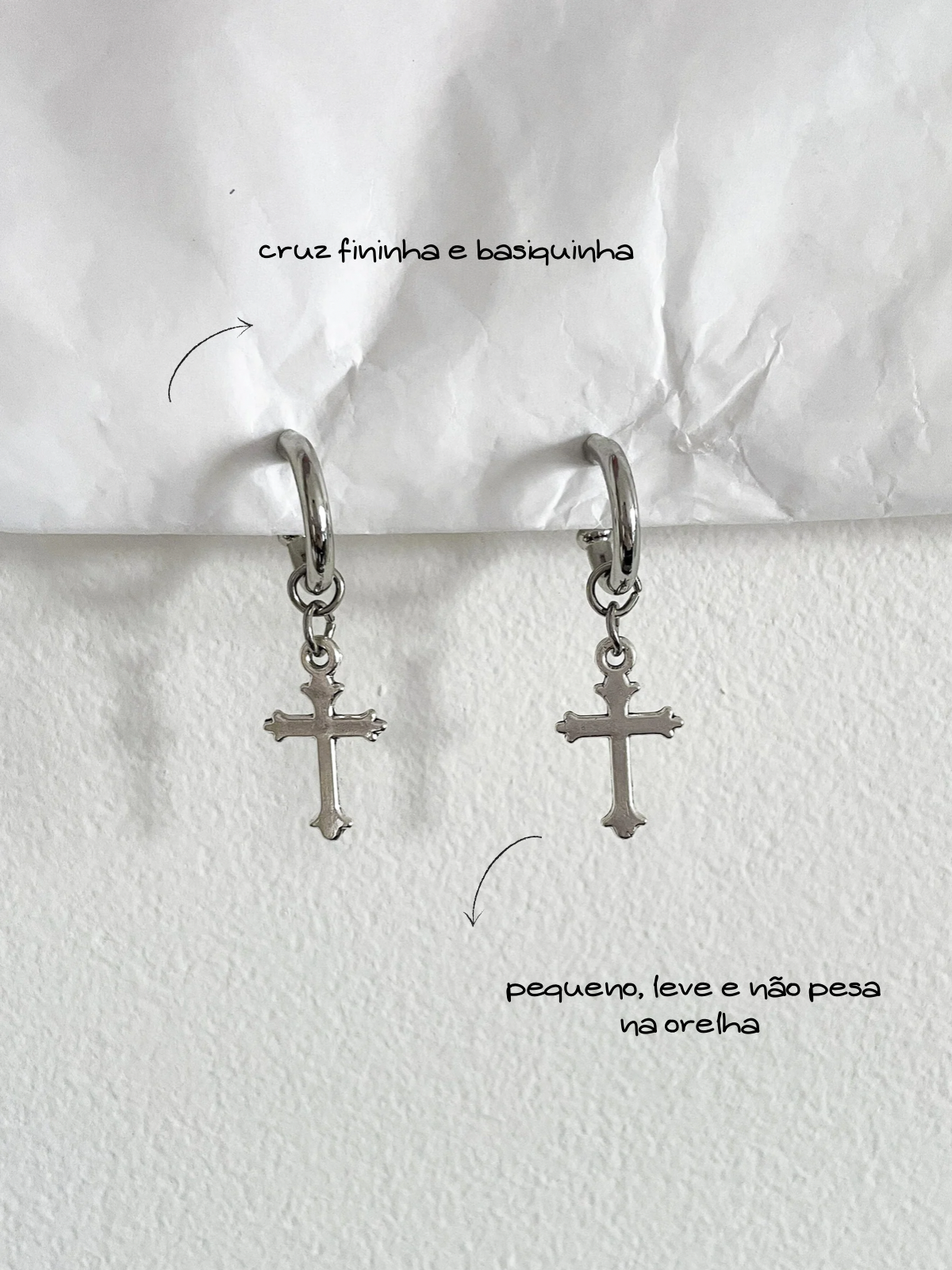 Olha que amor nosso brinco de cruz gótica. Ele tem a base de argolinha que fica super leve na orelha. A cruz tem as pontas trabalhadas que dá um super charme à peça e você vai amar. Além disso, ele tem um tamanho perfeito para usar sozinho no furo principal, ou em outros furos junto com outros tamanhos de brincos.