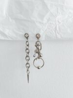 Wooow! Avisa que é ele: um dos brincos mais estilosos e diferentes, ele tem lados assimétricos sendo um cheio de piercings, argolas e elos maiores de corrente, e outro com uma corrente menor e spike na ponta. O melhor de tudo é que ambos os lados carregam um pontinho de brilho e fica mais incrível ainda.