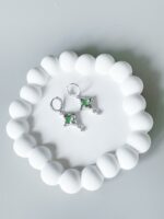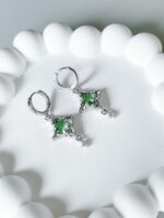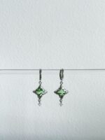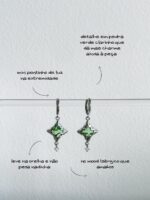 Brinco Zenith, é super tendência. Estilo futurista com metal lisérgico e cristal verde