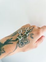Esse brinco é praticamente uma joia de tão incrível: no mood lisérgico que amamos, com esse formato em losango e uma pedra verde esmeralda clarinha dentro, e mini pontinhos de luz nas extremidades. O melhor de tudo é que ele tem a base em argolinhas e pode ser usado junto com o alargador. Ele tem um tamanho perfeito para aparecer no seu look e ainda assim se manter delicado. Você não vai querer ficar sem!