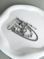 OMG! A maior tendência do Pinterest chegou e você não vai querer ficar sem. Todas as pessoas fashionistas estão usando e esse broche customizado que vai mudar todo o seu look. Ele tem os elementos mais legais e nós podemos provar: começando pelo alfinete super diferente e encorpado como base, e embaixo temos a corrente que vai de lado a lado, uma corrente de bolinhas, alfinete com pérolas e mini spike pendurado, um super coração todo trabalhado com raios, uma bolinha em ônix que traz essa mistura de metais mega estilosa e ainda tem uma corrente de bolinhas com pingente sparkle no final. Perfeito, né?!