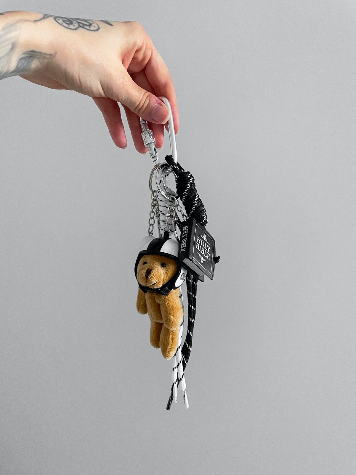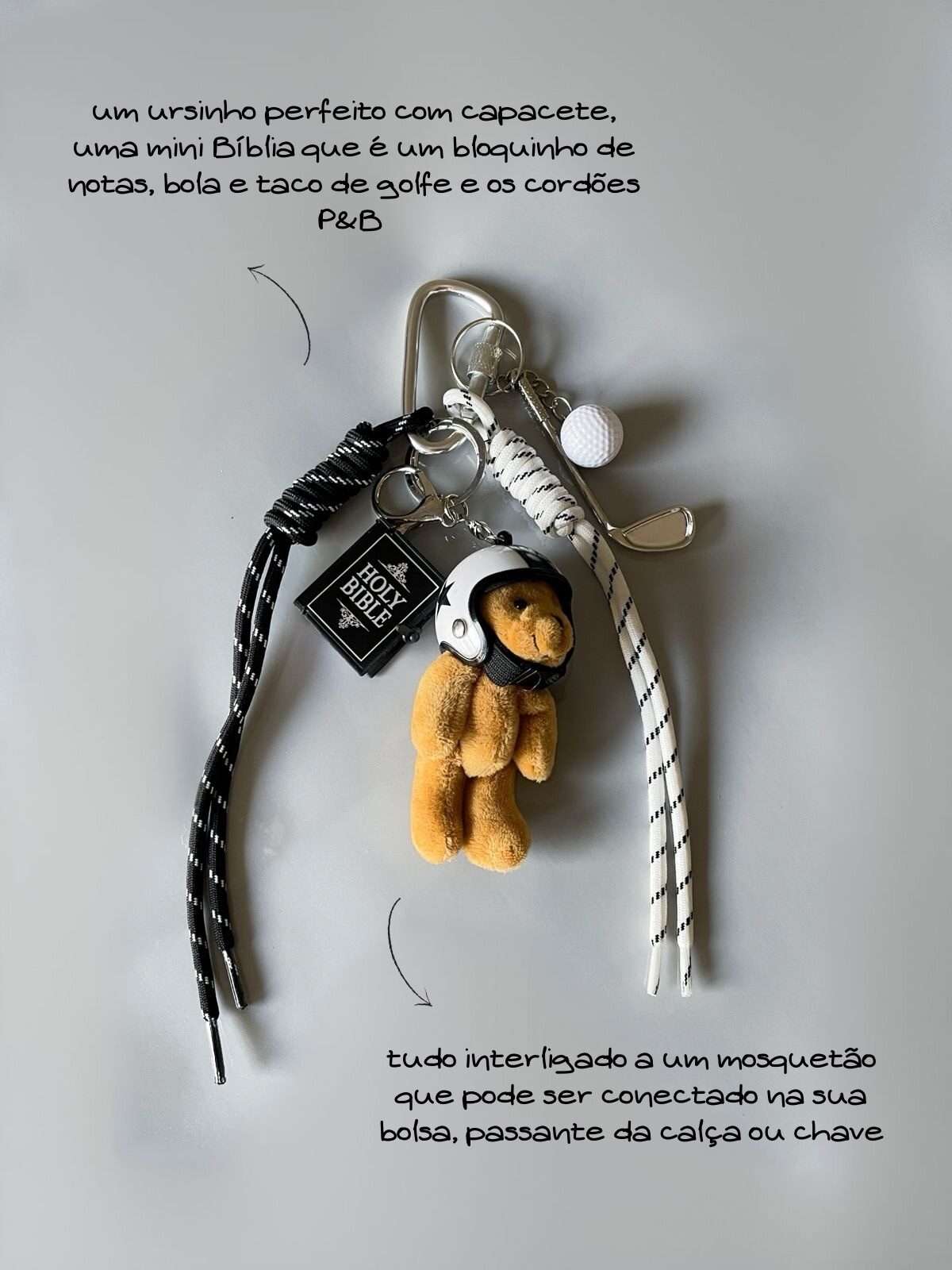 OMG! A maior tendência do Pinterest chegou e você não vai querer ficar sem. Todas as pessoas fashionistas estão usando e você não pode ficar de fora! A perfeição desse chaveiro não está escrita nem na Holy Bible! Nosso Teddy Bear Keychain é super fofo: um urso de CAPACETE de baseball pronto pra roubar a cena e deixar seus looks ainda mais estilosos. Perfeito nos mínimos detalhes: mosquetão prateado pra pendurar onde quiser (chaves, bolsa, passante da calça, mochila…), cordões P&B que dão o contraste na medida certa, uma mini bíblia colecionável com o nosso ursinho icônico estampado e o kit completo: taco + bola de baseball. É aquele detalhe que atrai olhares curiosos e automaticamente gera o clássico: “Uaaau, onde você comprou isso?!” toda vez que alguém bate o olho.