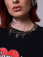 Na vibe alternativa raiz que amamos, essa trama de macramê nas laterais é mega estilosa e é feita artesanalmente com horas e horas de trabalho. Além dessa trama, ele conta com argolas, piercings, spikes e é mega estiloso. São 7 spikes, 3 piercings, 1 piercing com ponto de luz, e mais de 30 argolas de vários tamanhos diferentes alternadas com argolas piercing. Clique aqui para encontrar a versão com alfinete e pingentes.