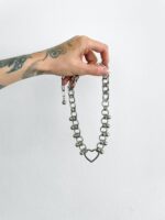 Choker Sticky Heart , feito com chainmail de coração prata e body chain removível