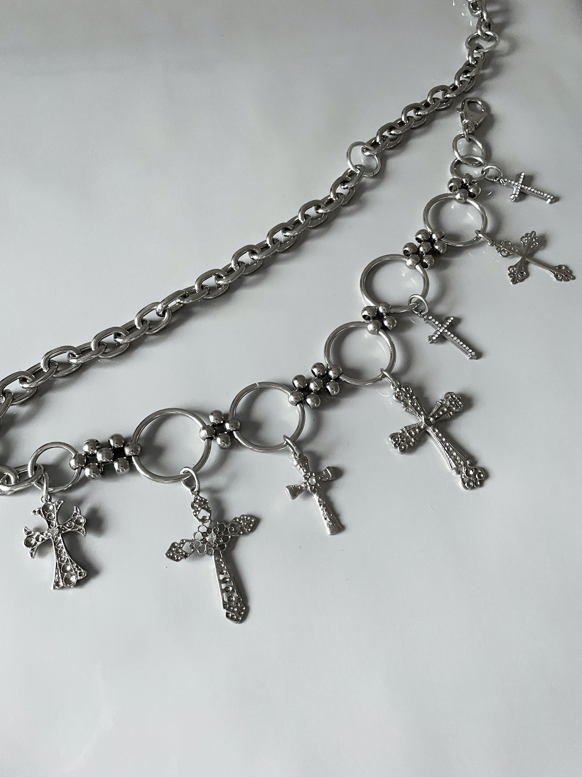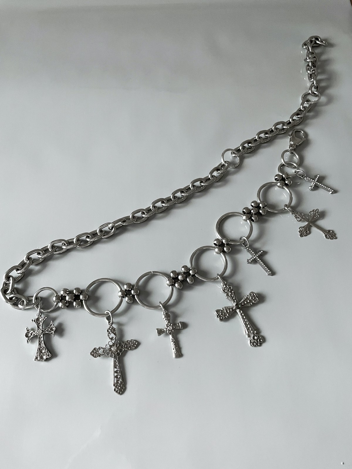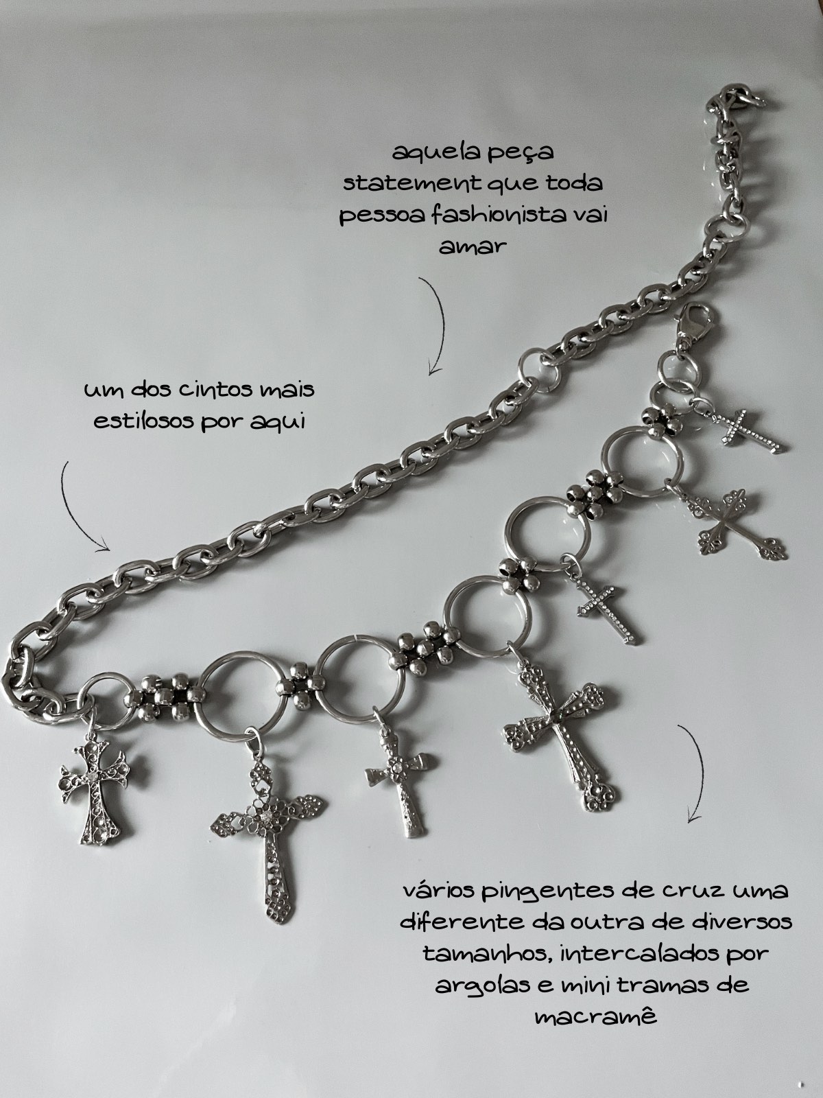Cinto Crossover, de metal super estiloso, feito com pingentes de cruz