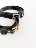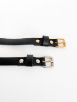 Cinto Slim, feito com material ecológico preto disponível em prata e dourado