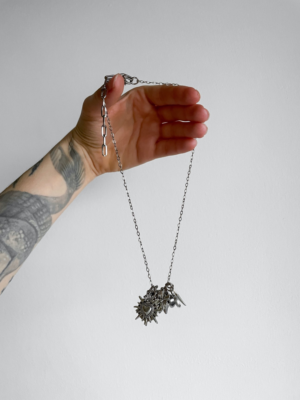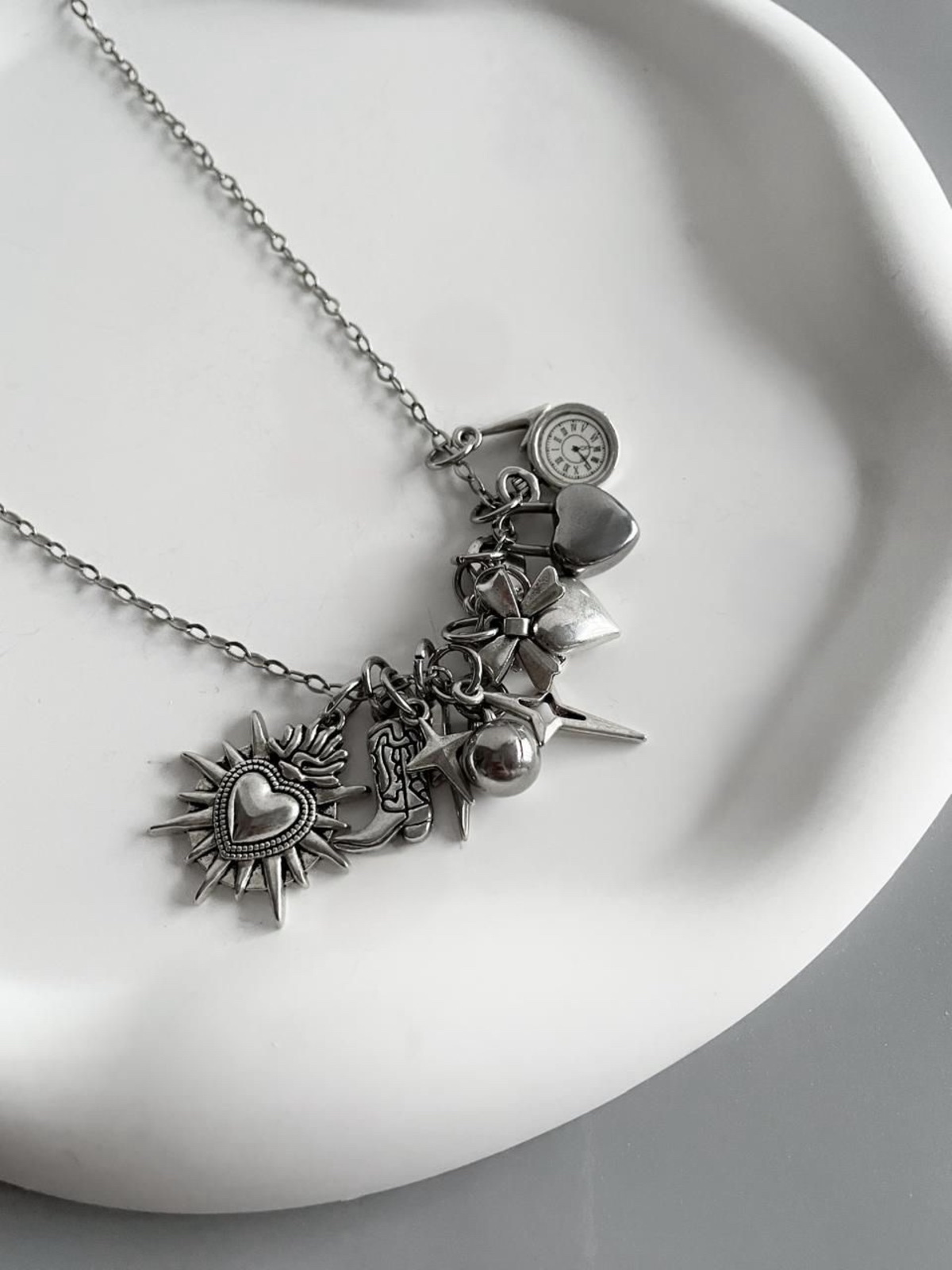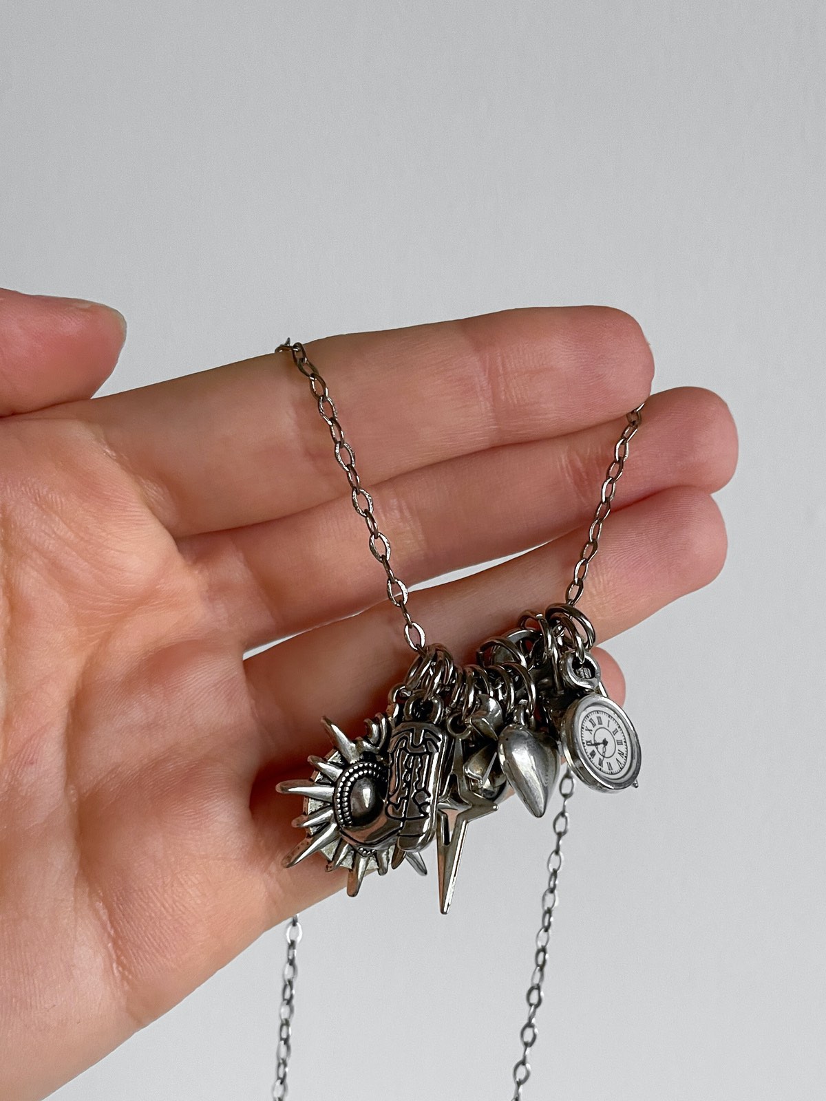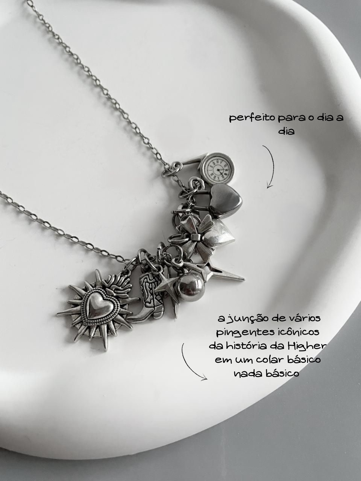 Mil e um charms do jeito que vocês amam! Aquele básico nada básico: a corrente bem simples com os pingentes mais legais ever! Escolhemos vários dos nossos pingentes que vocês amam em um colar só: o coração iluminado, a botinha western, coração, sparkle, bússola, lacinho e cadeado. Não tem como não amar!