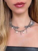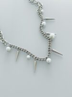 Colar Clash, feito com spike, pérolas e corrente níquel