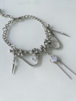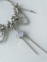 Colar Cool Heart, artesanal, feito com macramê de esferas prata, franjas de corrente e pingente de coração