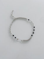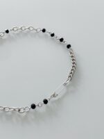 Colar Crystal Pin, feito com cristal preto, corrente prata e pingente diferente