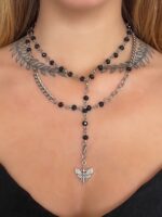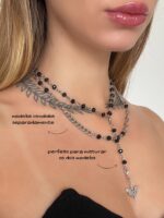 As peças na vibe mais gótica estão super em alta e esses cristais pretos com correntes e alfinetes vão deixar qualquer look mais incrível e cheio de atitude. Ele pode ser usado mais curtinho ou mais comprido, você que escolhe! E ainda fica perfeito se misturar com mais colares em um mix.