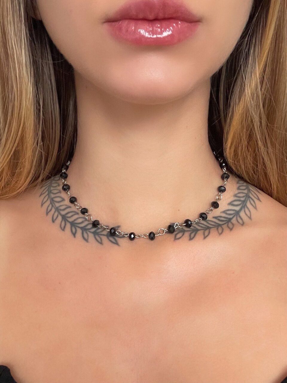Colar Dark Shine Basic, feito com cristais pretos e corrente níquel