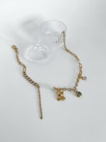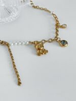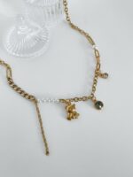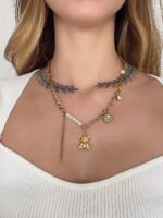 Estamos in love nesse novo modelo: o urso sempre foi um sucesso por aqui, mas vendíamos apenas em forma de Gummy, agora trouxemos essa super novidade do ursinho em metal e ainda mais dourado, dando toda a delicadeza ao colar. Junto dele temos misturas de elos diferentes de correntes, pontos de luz claros e em pedras ônix e para complementar, as pérolas que amamos. Aquele colar que você não vai mais querer tirar do pescoço. Clique aqui para comprar a versão dele em prata.