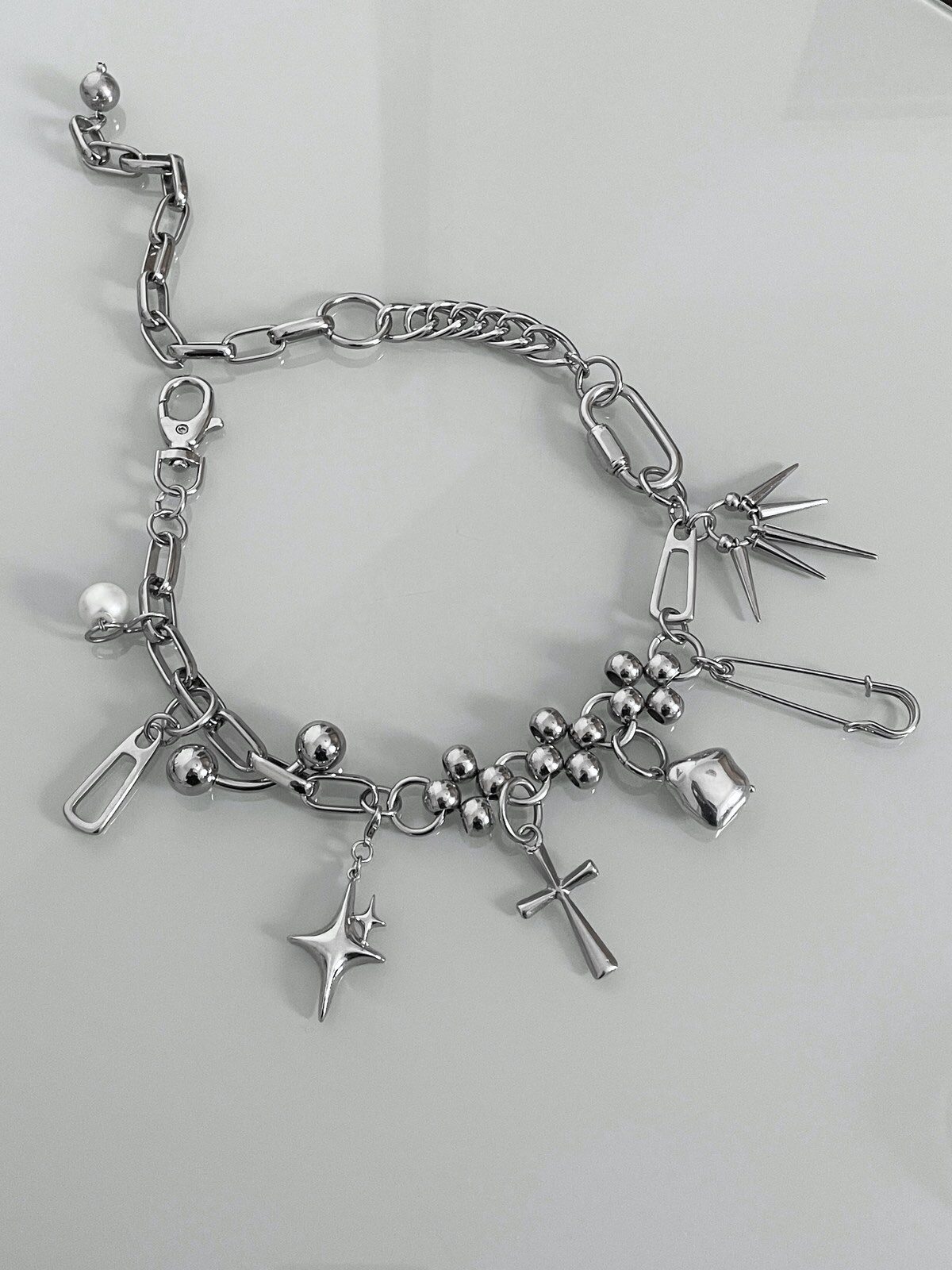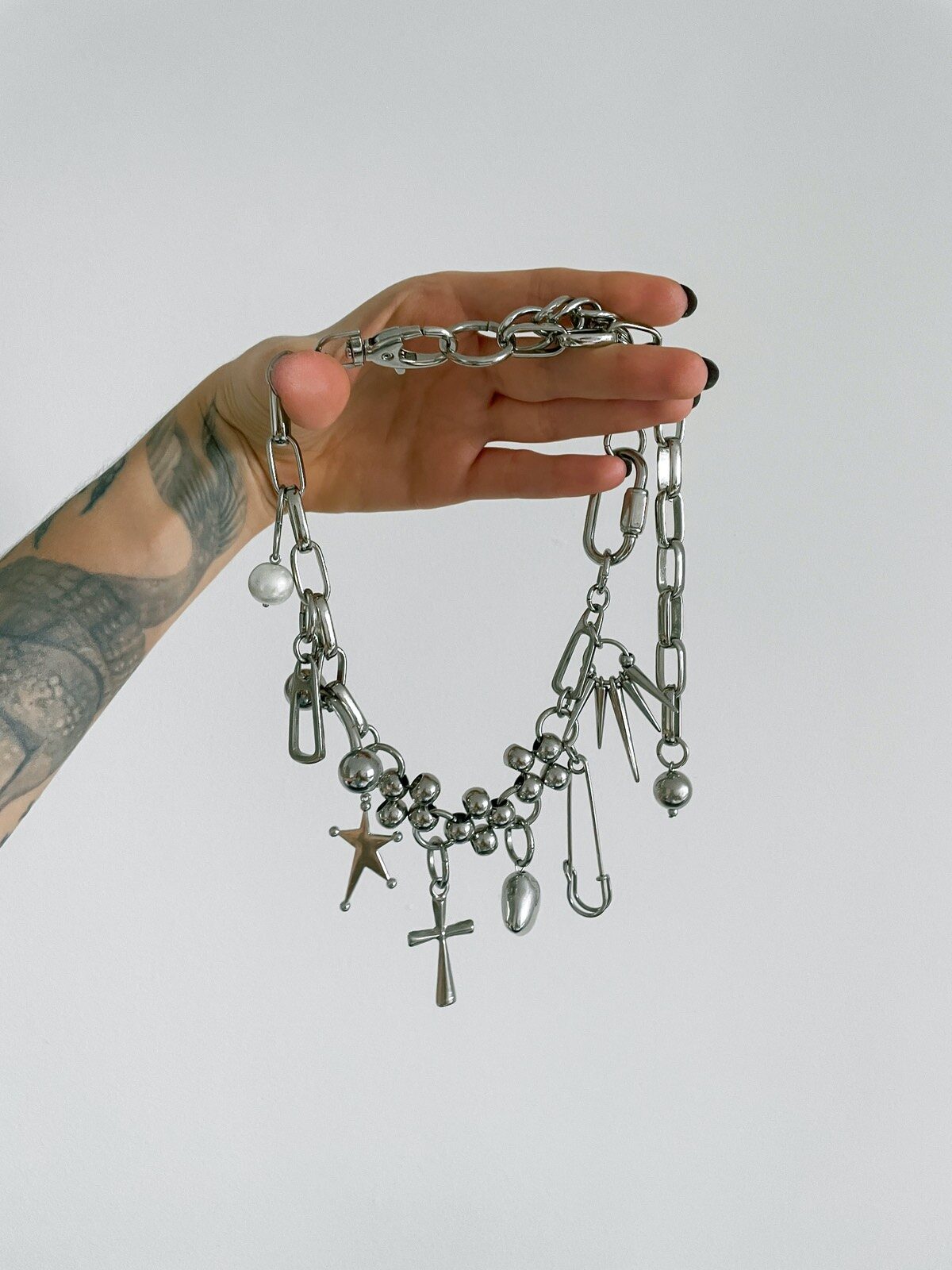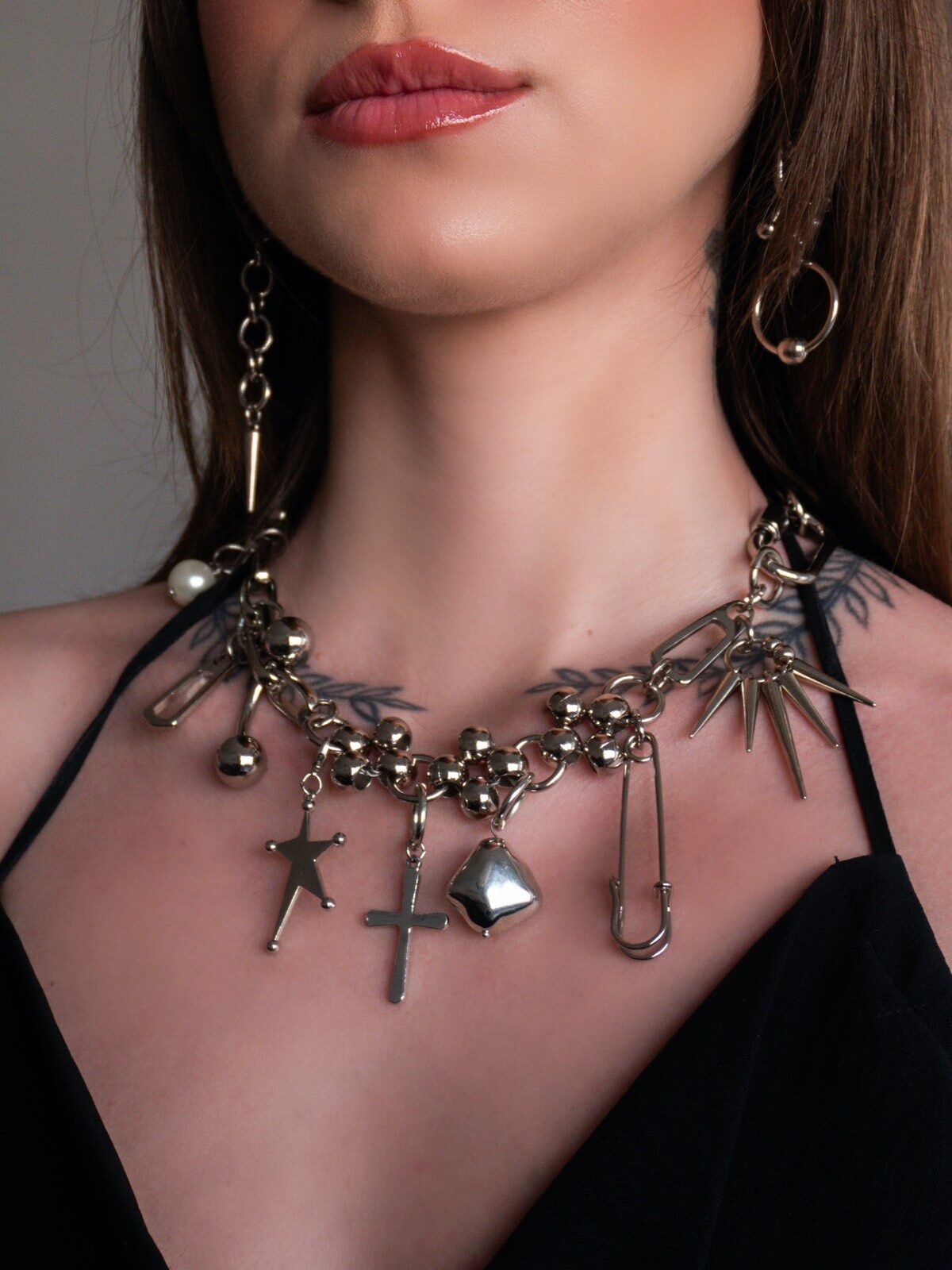 Ele traz elementos únicos: spikes, alfinete oversized, mosquetão, pedra metalizada, cruz, estrela, piercing e pérola em contraste sofisticado. Cada detalhe foi pensado para surpreender – dos elos de correntes à trama artesanal em macramê de bubbles, que dão movimento e textura especiais à peça.