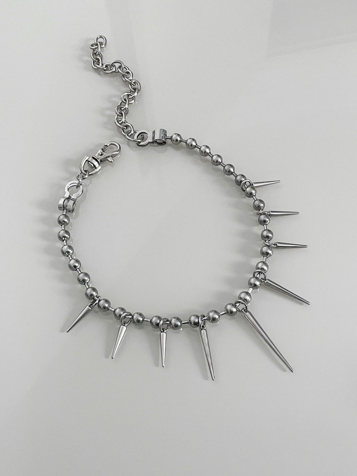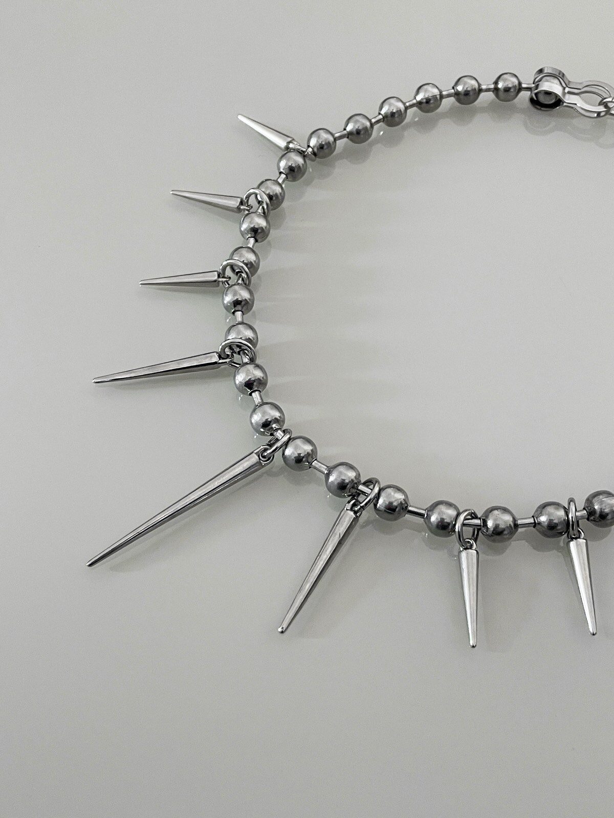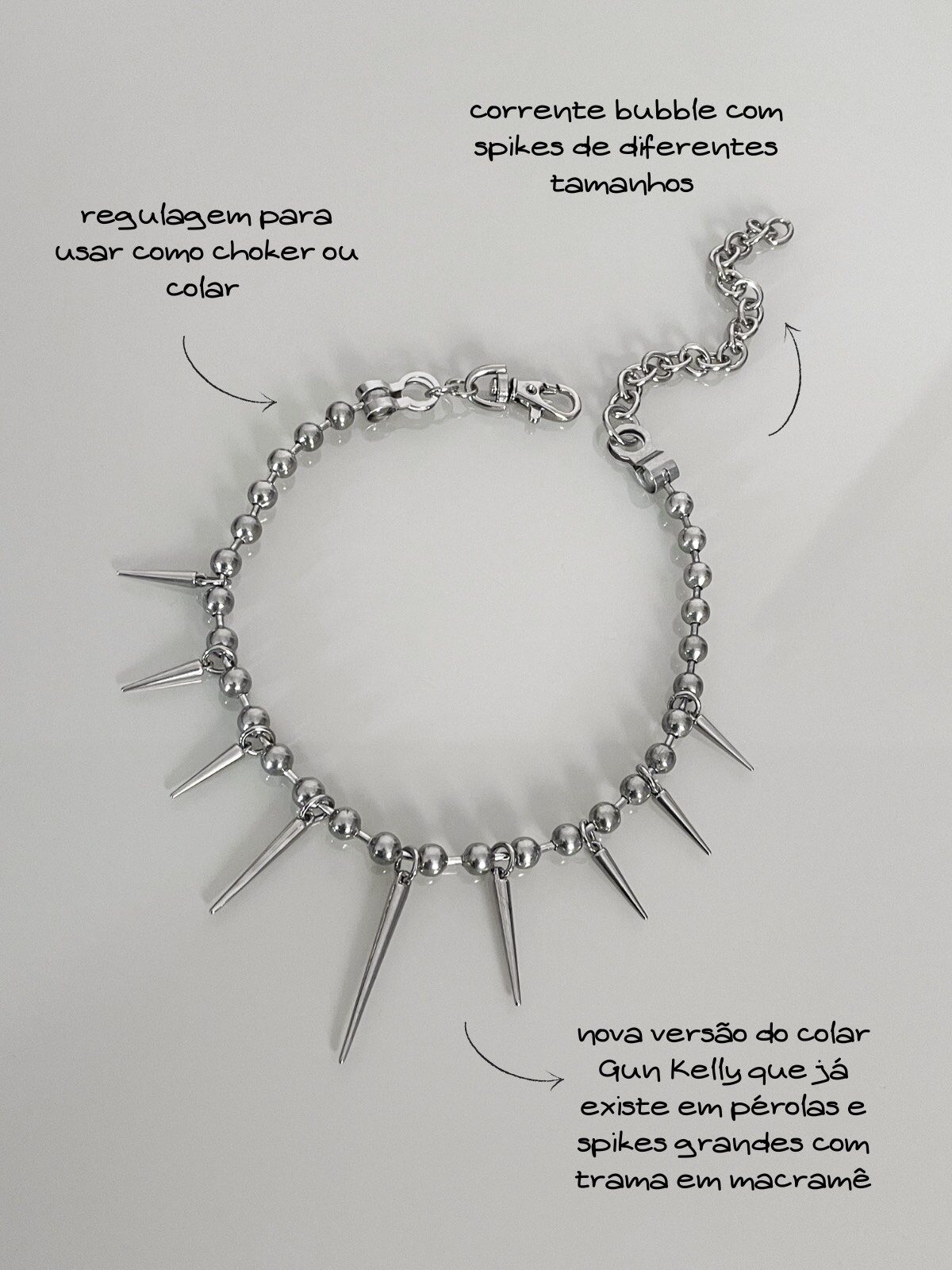Colar Lunatik, super estiloso! Feito com corrente bubble prata e spikes em diferentes tamanhos