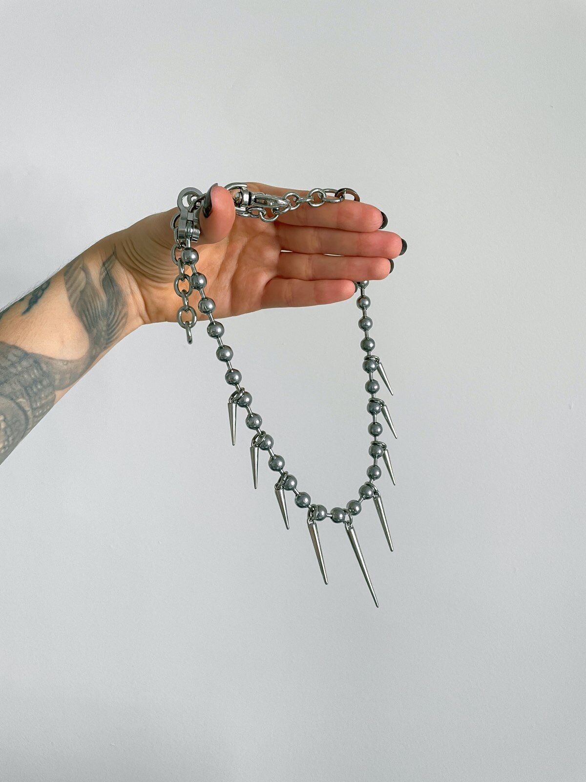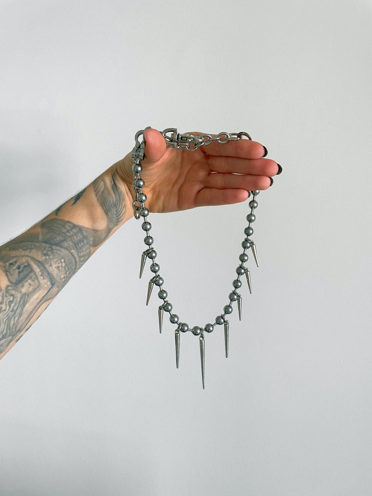 Se você ama um colar estiloso, se liga nesse: o Lunatik é a versão mais delicada (mas nem por isso discreta) da nossa linha Gun Kelly. Feito com corrente bubble de 8mm e spikes prateados em tamanhos variados, ele cria uma vibe incrível no pescoço — ousado na medida certa!