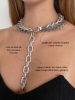 Essa corrente é incrível e nós podemos provar: ela brilha muito no look e ainda dá para ser usada simples como corrente, de trás pra frente com o restante do fecho caído e como choker. Perfeito para usar sozinho ou em um mix de outros colares.