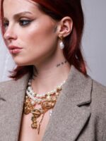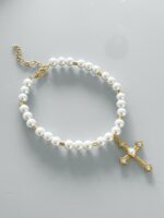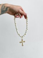 Quem ama nossas peças douradas com certeza vai amar esse novo modelo: ele tem as pérolas intercaladas com mini tubinhos dourados e pode ser usado na versão básica sem o pingente, ou com o pingente – removível – para deixar ainda mais estiloso. Para combinar com a base do colar, o pingente de cruz também tem as pérolas e é mega delicado. Enjoy!