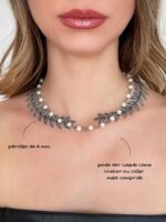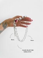 Colar Pearl Chain, feito com corrente de pérolas artesanal prata