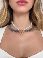 Colar Pearl Padlock, feito com pérolas e pingente de cadeado